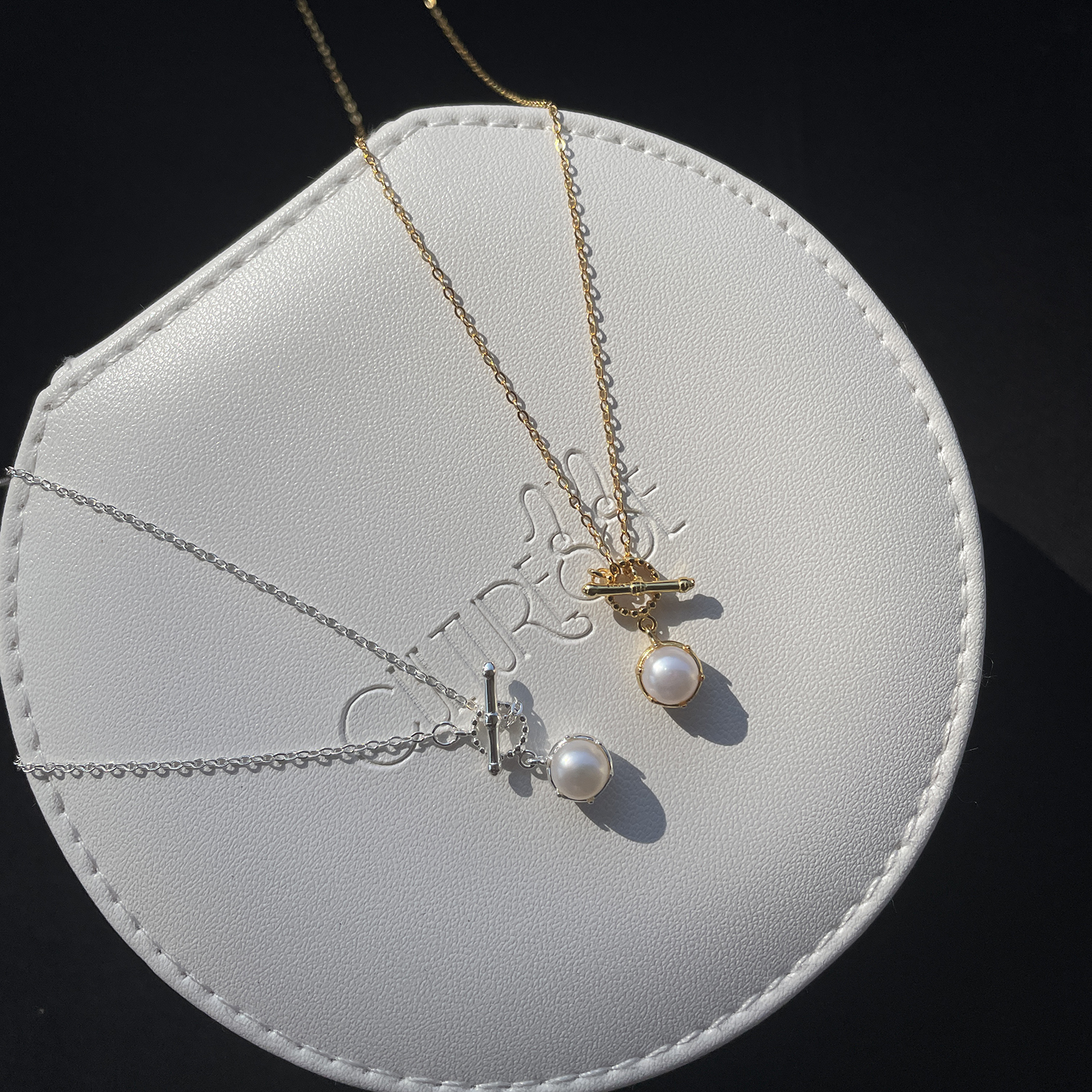True refinement seeks simplicity. Introducing Bjorn Pearl Toggle Pendant Necklace (Gold) - a dainty style neckpiece to delight your day in a subtle and chic way. This design features a fine gold chain adorned by a freshwater pearl in a claw setting. The toggle bar closure compliments the classic pearl element and adds a contemporary vibe to the piece. This necklace is made in sterling silver with 18ct gold plating. The freshwater pearl is handpicked to ensure a smooth surface and an elegant lustre. This necklace is 45.5cm long. Suitable for dainty, feminine, timeless, minimalist, modern, layering, smart casual, casual, everyday styles and more. Hypoallergenic, nickel, lead, and cadmium free.