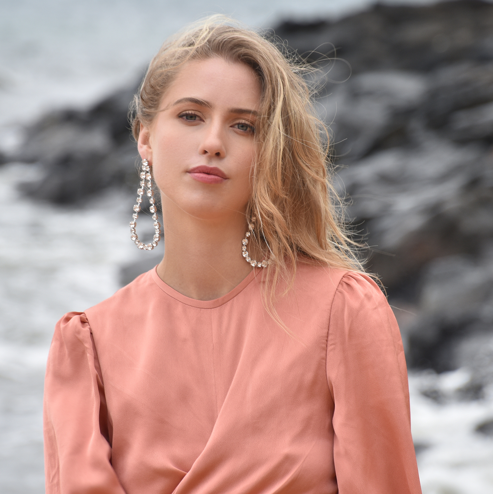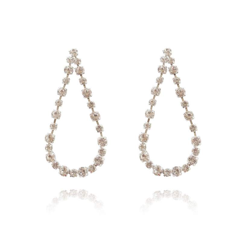 A shimmering 'water drop' that is exotic and 'eye-grabbing'. introducing Blake Shimmering Water Drop Earrings - a 'glamour ready' design that add instant high fashion vibes to your up-styling. This design is crafted in environmentally friendly stainless steel (nickel free) with crystal-encrusted diamantes and silver plating, giving the earrings a bright shimmer. Extravagant yet exuding feminine energy, this earring style is versatile in styling and make a fabulous outfit exclamation mark for dressy, modern, and formal styles. Available for both pierced and non-pierced ears.