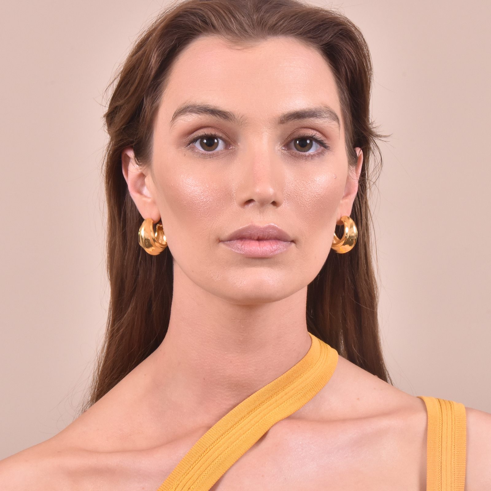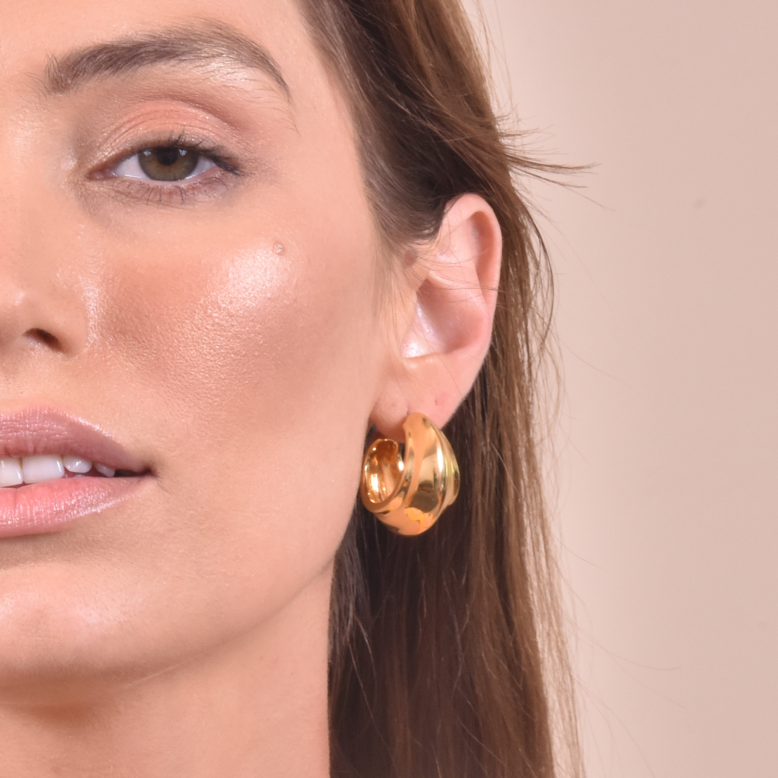 Modern simplicity with a bold attitude. Introducing Blakely Chunky Gold Bowl Earrings — an on-trend chunky statement for the modern and bold. This contemporary inspired style is crafted in titanium steel (nickel free) with 2.5 microns of 18K yellow gold plating, giving the earrings a rich yellow gold shine that is also tarnish resistant. The earrings are formed in a thick crescent bowl shape with 4 rounds of polishing (standard polishing is between 1-3 rounds) for a smooth and mirror-like finish. This design also comes with sterling silver earring posts for hypoallergenic wear. A simple statement showcasing sophistication and boldness. Perfect for modern, vintage, artsy, chic, minimalist, punk, nordic, casual styles and more. Hypoallergenic, nickel, cadmium and lead free.