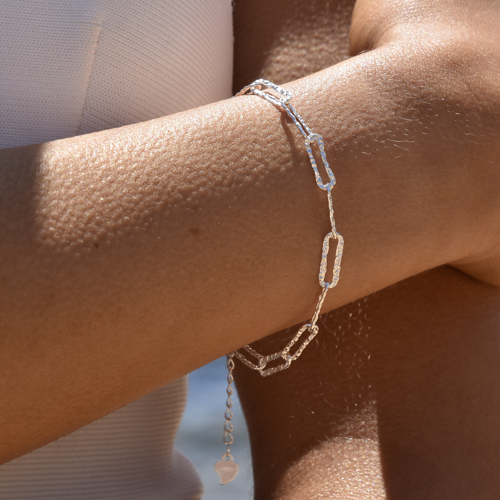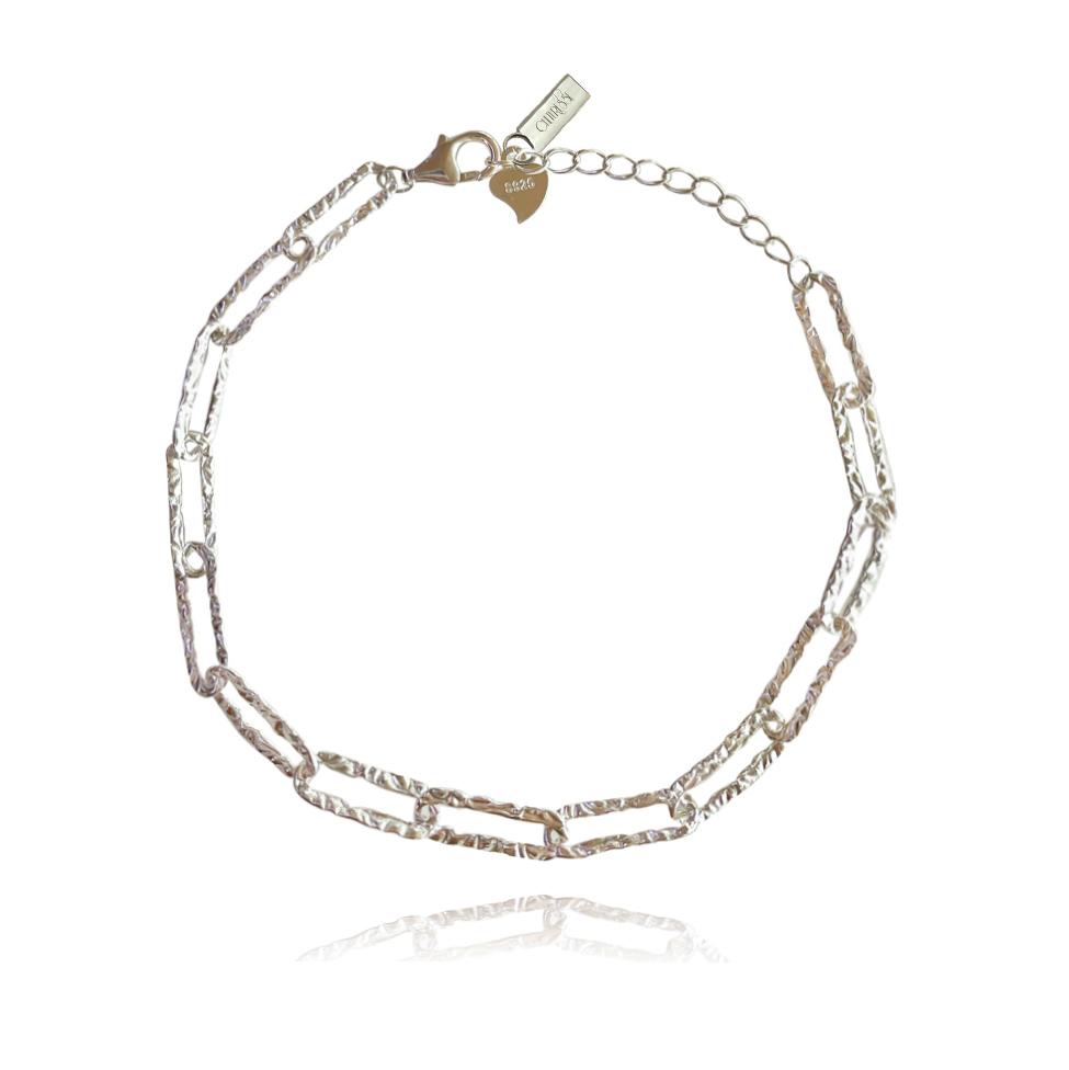 Simple, minimal and versatile for styling. Introducing Blanc Minimalist Silver Chain Bracelet - a modern chain style wrist love with a subtle strength. The design features textural fine chain link made in solid sterling silver. It is also plated with white rhodium for an extra anti-tarnishing protection. A stylish touch perfect for modern, minimalist, chic, punk, smart casual, casual, everyday style and more. Hypoallergenic, nickel, cadmium and lead free.
