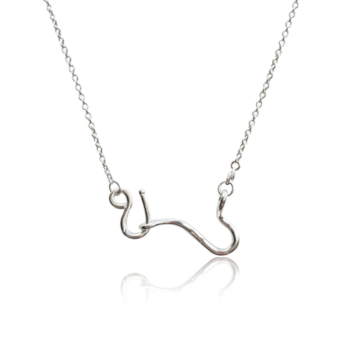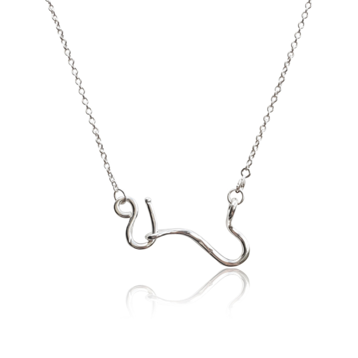 Artsy, unique and ethical. Introducing Bleu Abstract Line Art Necklace - an artisan crafted Nordic style neckpiece for artistic muses. This design features a bright silver chain necklace with a large frontal clasp feature. The clasp features 2 abstract lines sculptured in a curvy way, forming a contemporary line art flow when hooked together for closure. The surface of the curved abstract lines include intentional dent marks (they are not defects) for a raw aesthetic visual effect. Perfect for contemporary, artsy, minimalist, smart casual, casual styles and more. Hypoallergenic, nickel, cadmium and lead free.