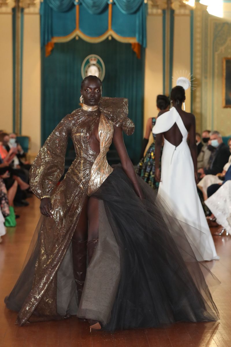 The program launch of the 2021 Melbourne Fashion Festival is hosted in the ballroom at Government House, Victoria. The breath-taking space, with its soaring ceilings and grand gold detailing, provided the perfect backdrop to celebrate 25 years of fashion, arts and ideas. The incredible 145-year-old ballroom was then converted to a grand runway featuring looks from 25 local designers chosen to mark 25 years of the Festival. As per our passion for supporting Australian fashion and creatives, Culturesse is proud to contribute our jewellery collections for the final touch! We are excited to share the below looks and featured Culturesse jewellery.