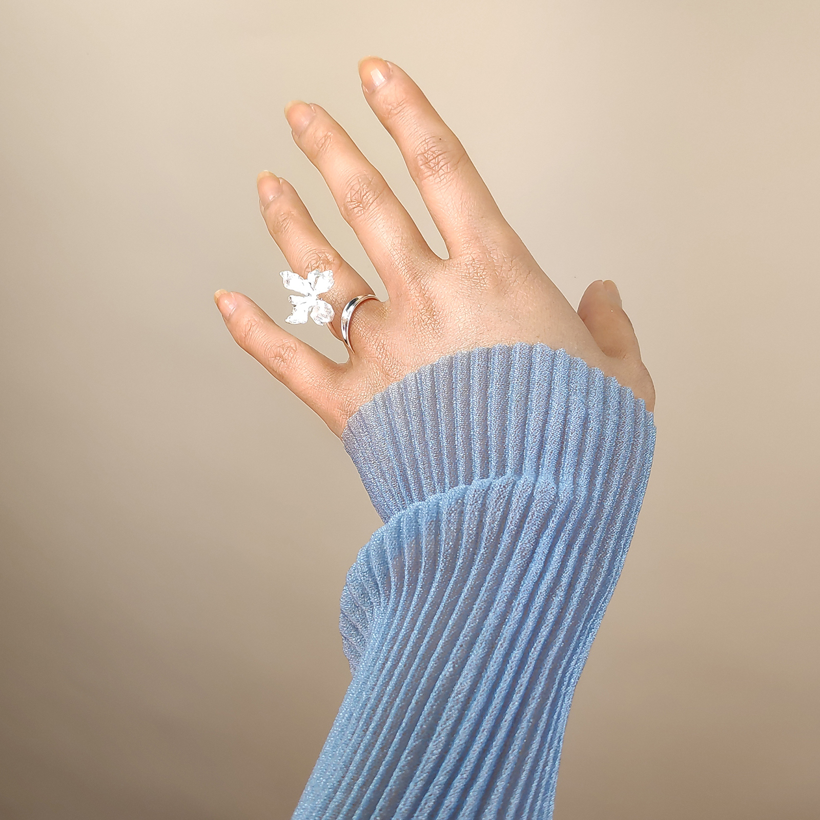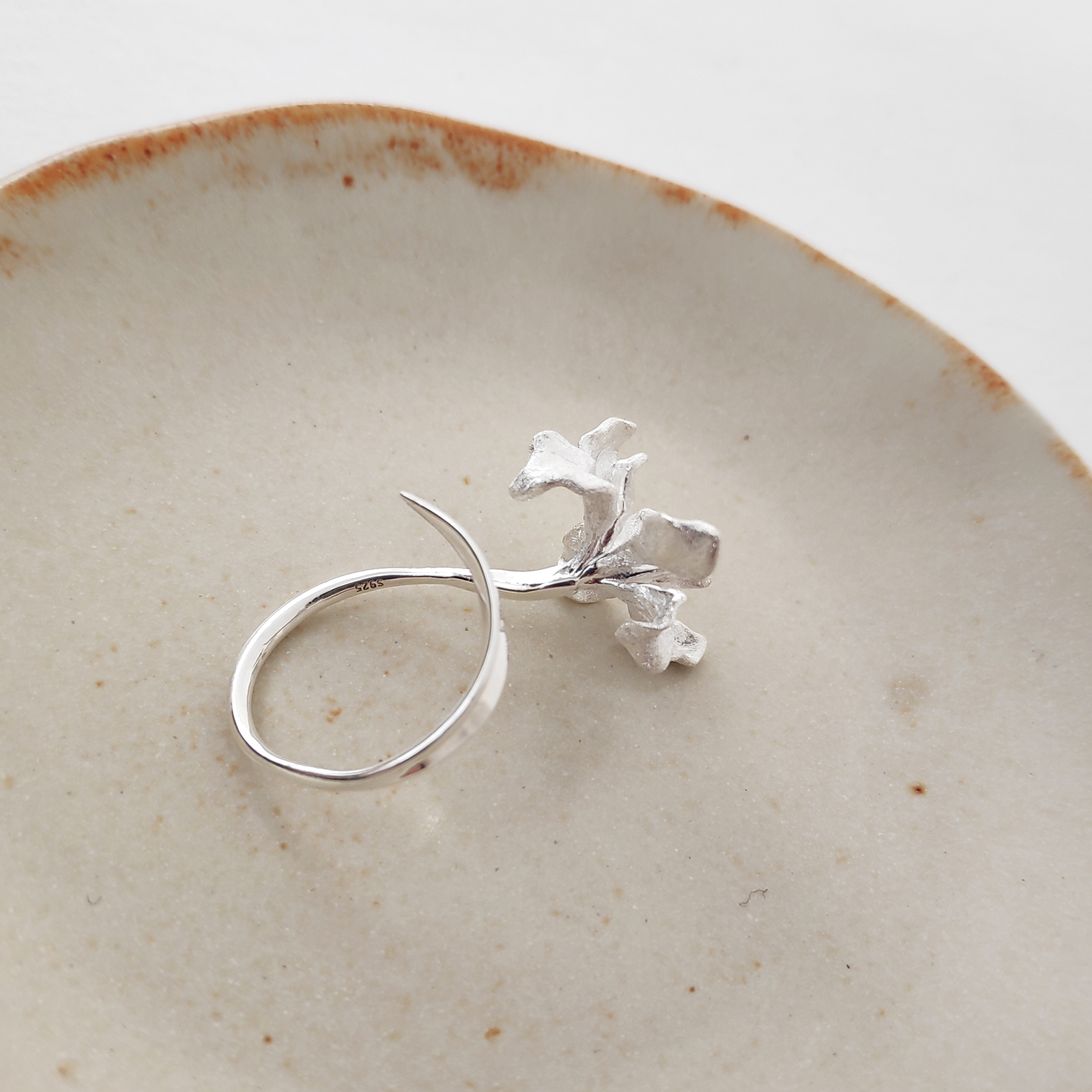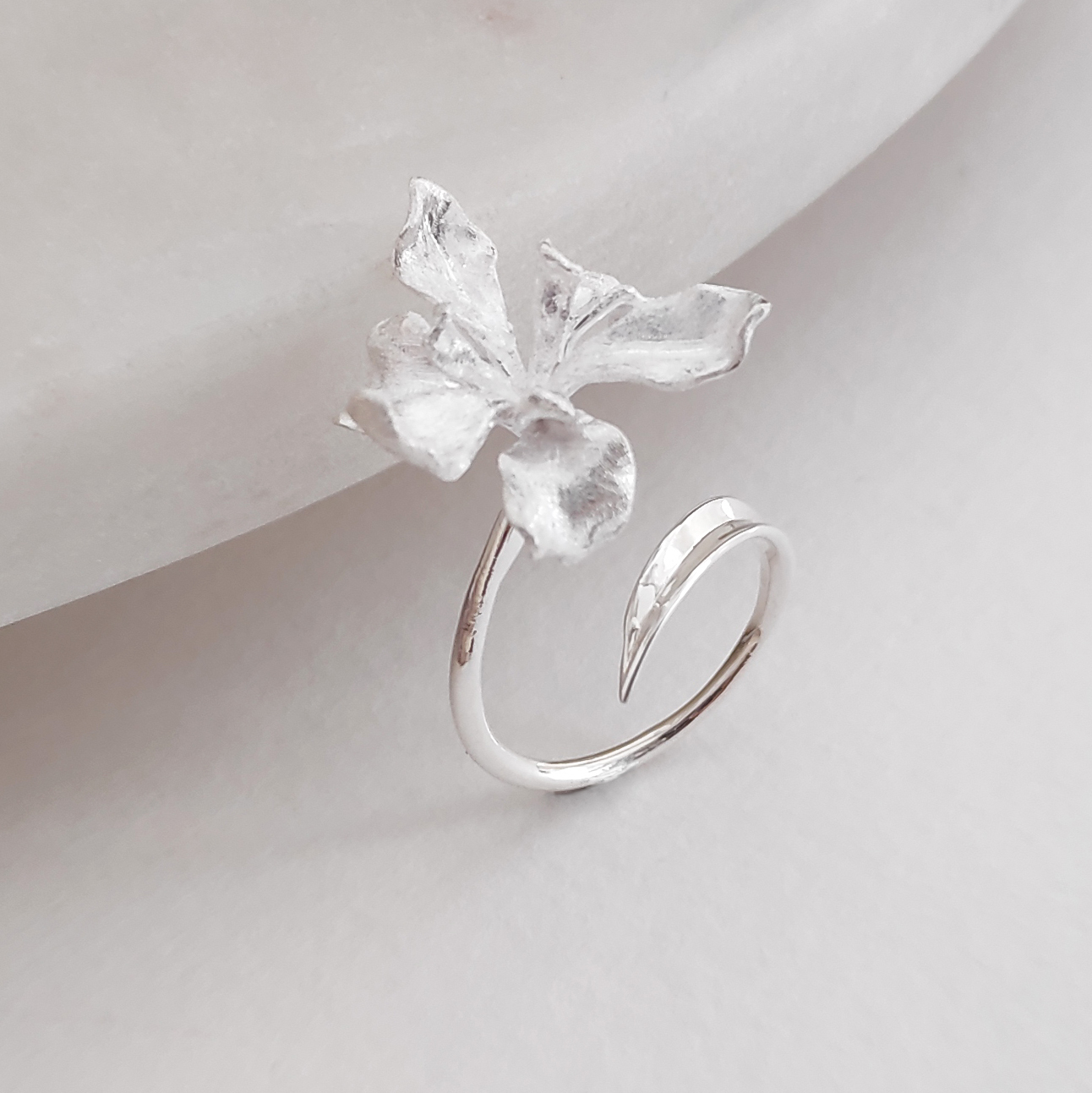 Fineness, rawness and creativity interweave. Introducing Bloom Artisan Silver Open Ring — a soul-flying artisan finger art exhibiting fine jewellery craftsmanship. This elegant and unique piece of art is handcrafted in solid sterling silver. The ring band is finely polished with a smooth subtle open curve, while the blooming flower element exudes fine textured details. This ring is fully resizable and adjustable manually so you can adjust for the most perfect fit. Perfect for modern, creative, high fashion, bold, feminine, elegant, smart casual, artsy styles and more. Hypoallergenic, nickel, cadmium and lead free.