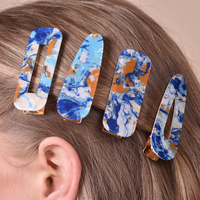 Colour splash with an artsy vibe. Introducing Bluebell Aqua Splash Hair Clip Set - a contemporary style hair accessory for art-loving muses. This set features 4 pieces of large hair clip in triangular and rectangular shapes. Each hair clip comes in a marble pattern with a mix and blend of deep blue, sky blue, orange, beige and white. You can mix and match different pieces when styling or wear one on its own. Suitable for teens and kids.