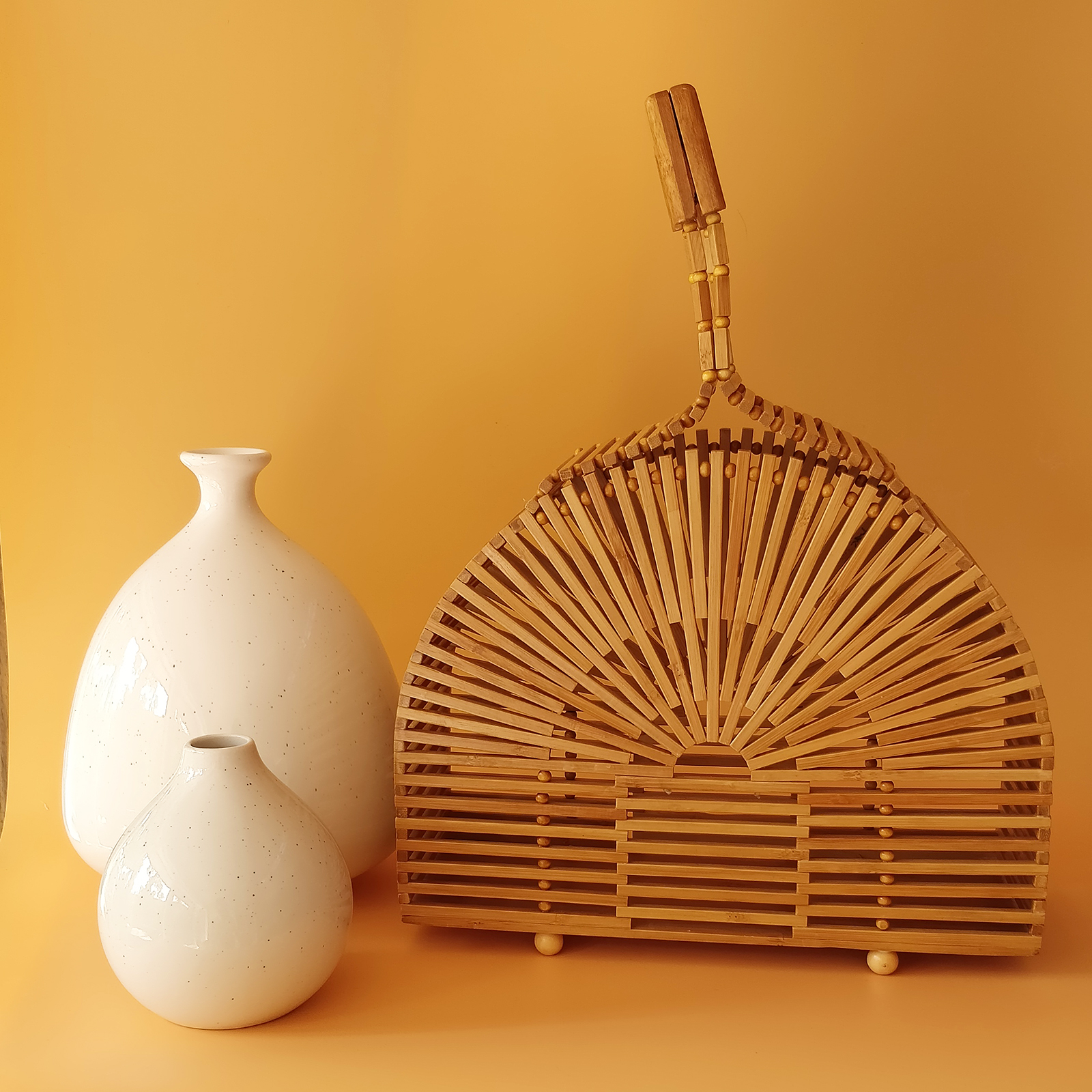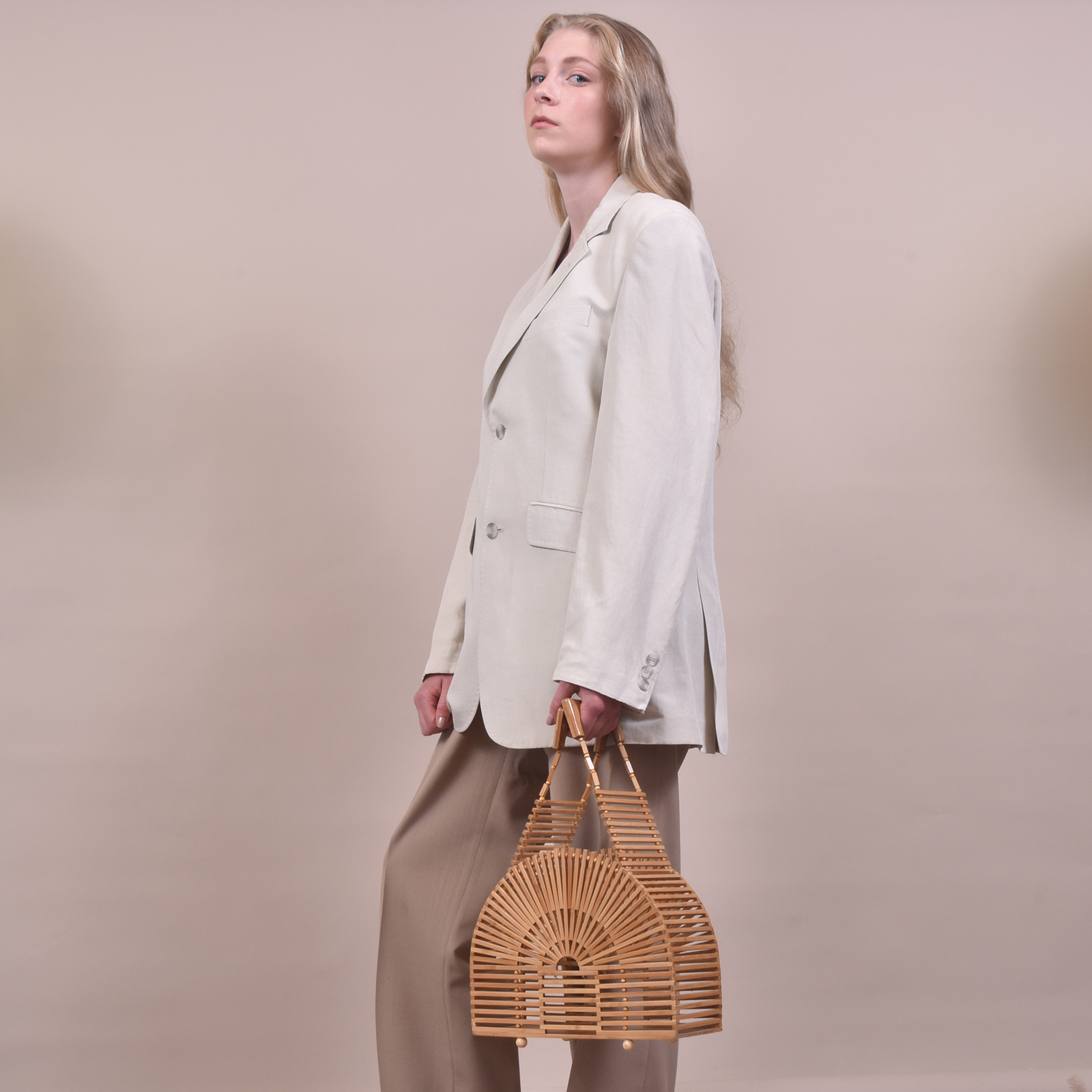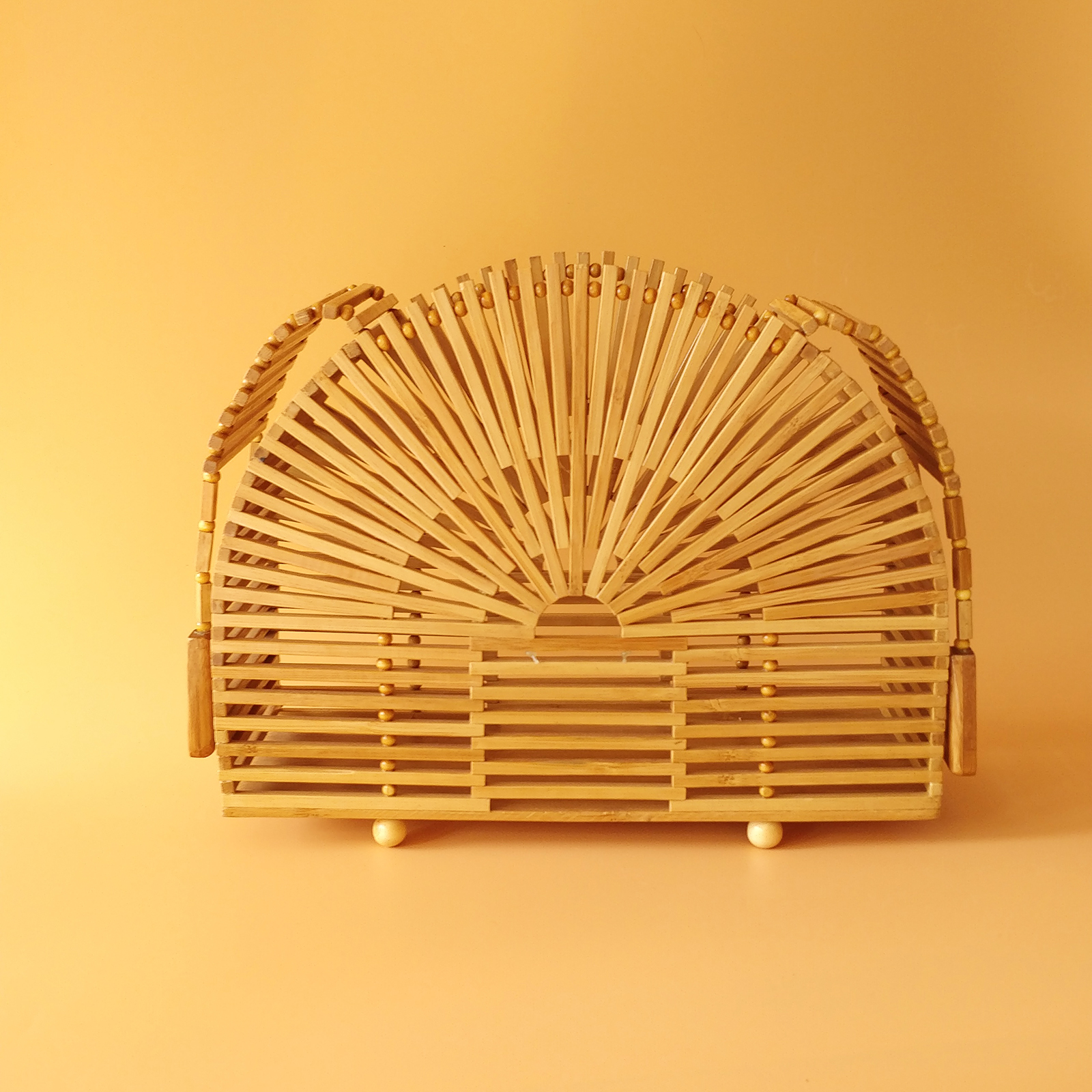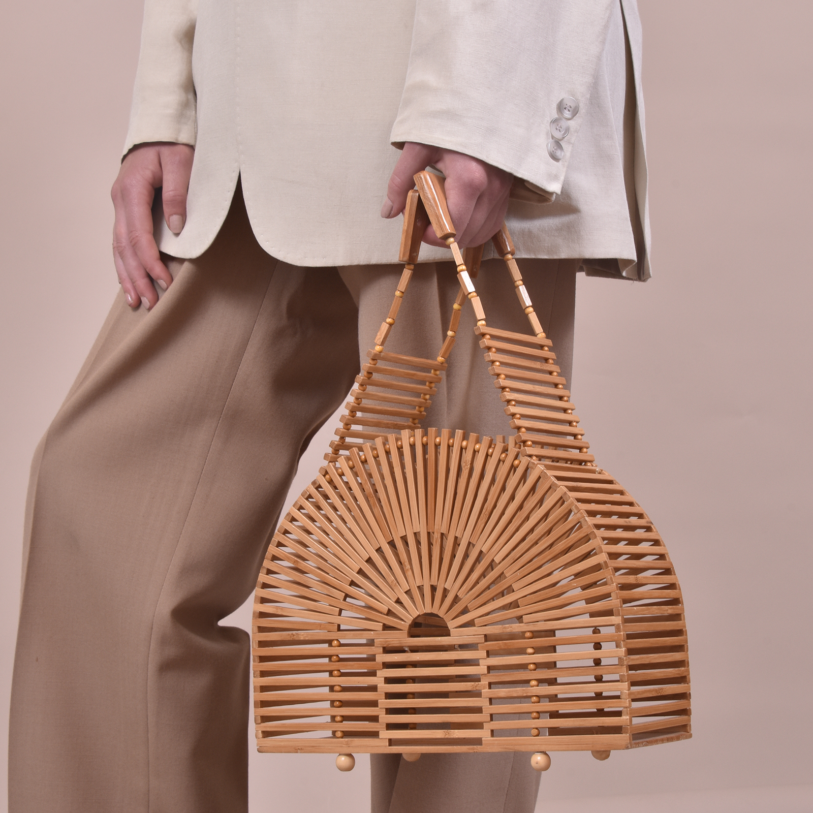 Yes to bamboo and yes to neutrals. Featuring smooth and curvy lines as well as trendy see through design, this contemporary accessory comes with a large storage space and super comfortable handles. Designed for modern accessory lovers who prefer something 'flowy', practical and endurable.