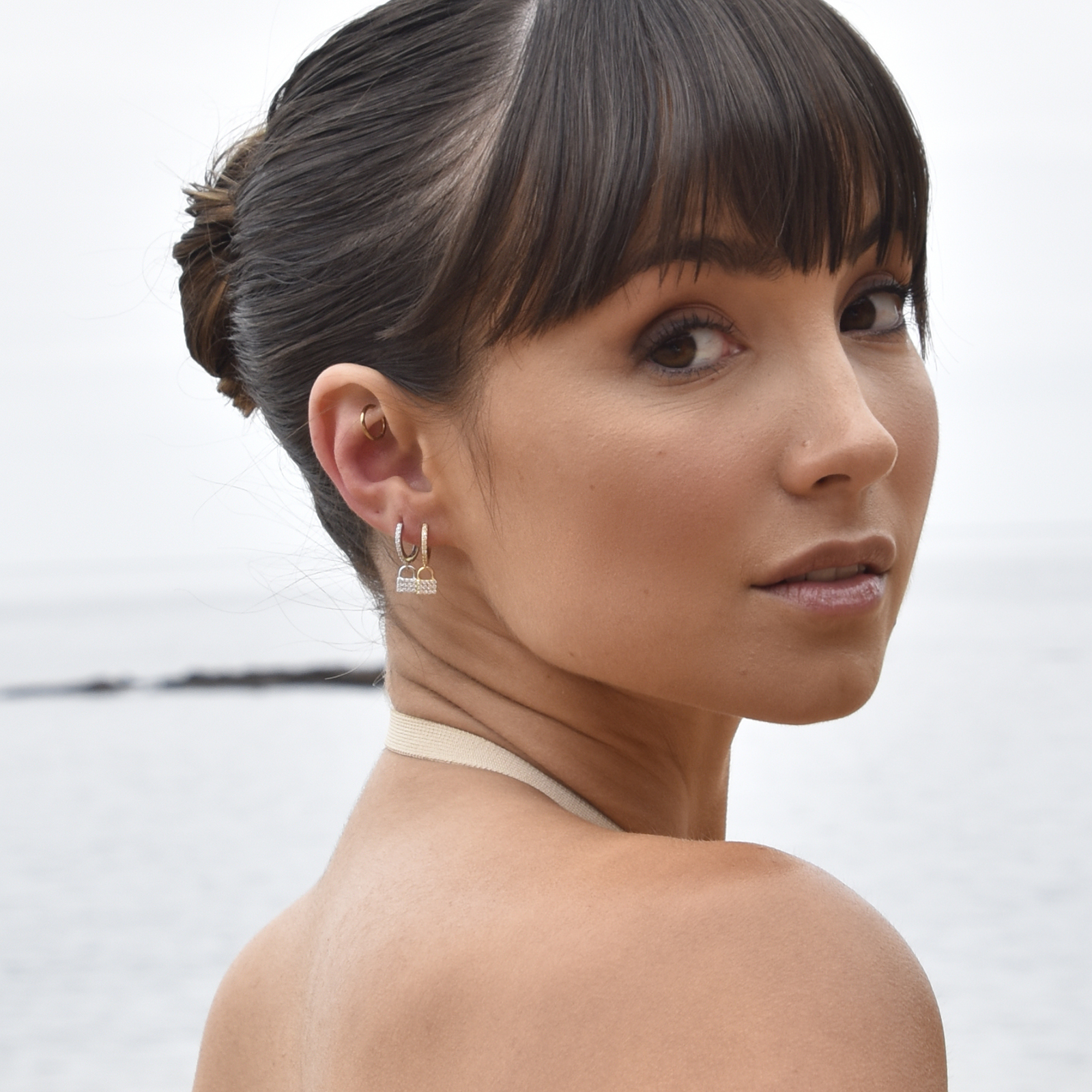 Everyday ear love with a gorgeous subtle shimmer. Introducing Beatriz Diamante Padlock Drop Earrings (Gold Vermeil) - a stylish and super chic earring style for women and girls of all ages. This design features dainty hoops and padlock drops both embellished with inlaid Austrian zircons. The earrings are made in solid sterling silver with 2.5 microns of 18K gold plating (to Gold Vermeil Jewellery Standard) for hypoallergenic and enduring wear. They are of a comfortable weight to wear all day. Perfect for modern, retro, chic, trendy, punk, earring layering, smart casual, casual, everyday styles and more. Also suitable for kids. Hypoallergenic, nickel, cadmium and lead free.