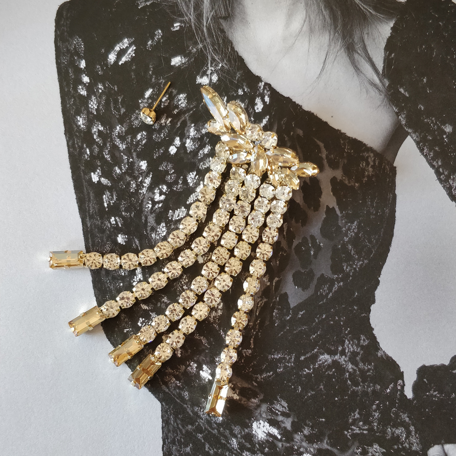 Bring your glamorous mismatching style to another level! Introducing Bright Night Crystal Diamante Earrings -- a fun and unique mismatching style that adds a 'celebrity apparel' in no time. Outspoken contrast is the theme for this design. The edgy and high fashion attitude is expressed via the contrast between the statement dangle and the simple stud. Crafted in environmentally friendly stainless steel (nickel free) with shimmering crystal-encrusted diamantes, show your style without having to speak.