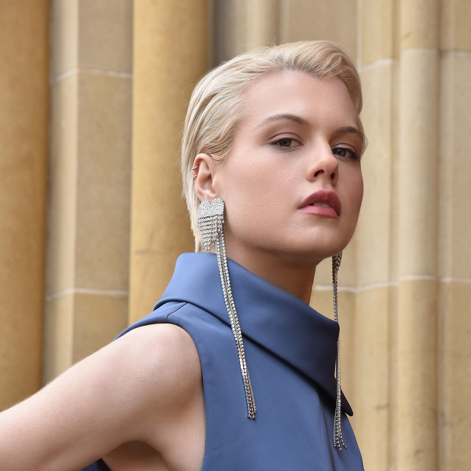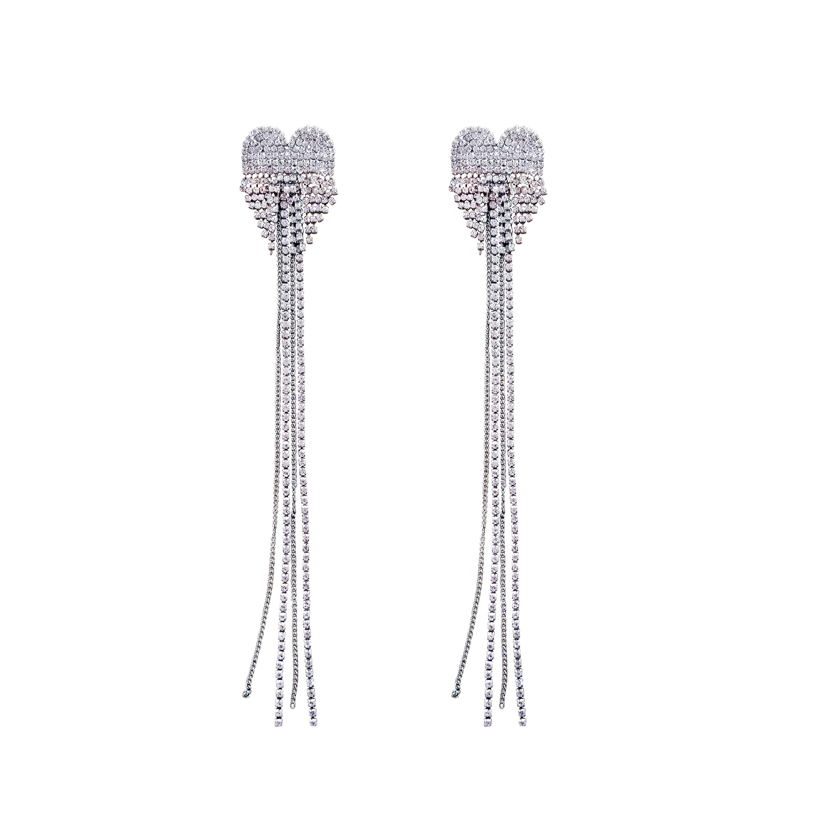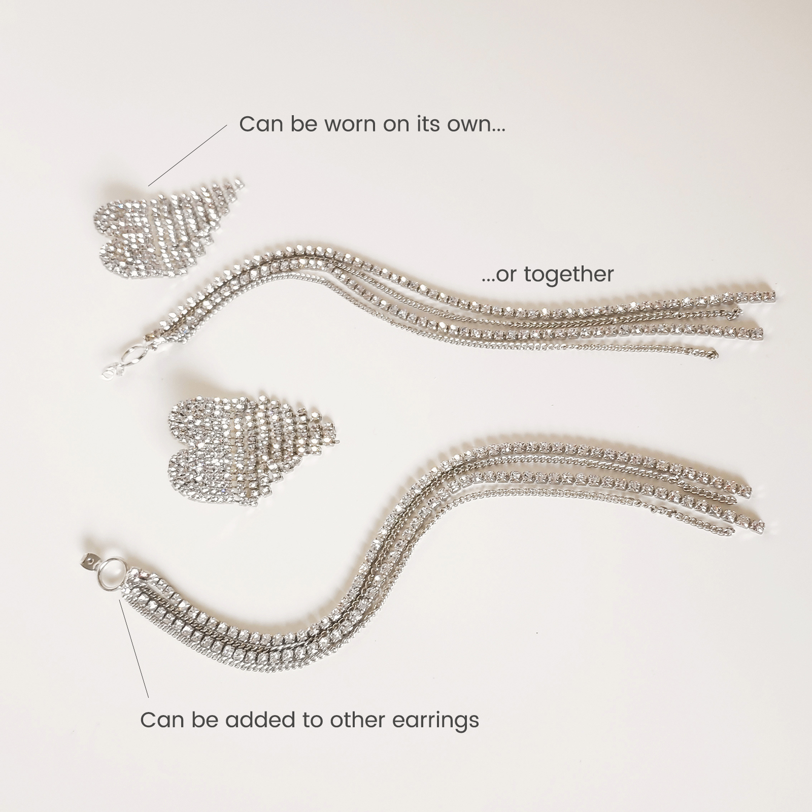 When elegance and boldness becomes one! introducing Bronte Catwalk Crystal Drop Earring - a mega runway vibe design featuring a separate front piece and a long hanging crystal-encrusted tassel, which serves as the earring backing. This design is crafted in environmentally friendly stainless steel (nickel free) with crystal-encrusted diamantes and silver plating, giving the earrings a bright shimmer. This design can be worn with the front piece only or together with the long tassel backings. It also allow you to explore your styling creativity by mismatching the long drop tassel with other earrings that you may already have. Dare to wear outside the box!