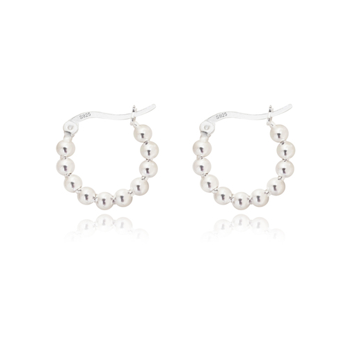 Bryn Beaded Silver Huggie Earrings