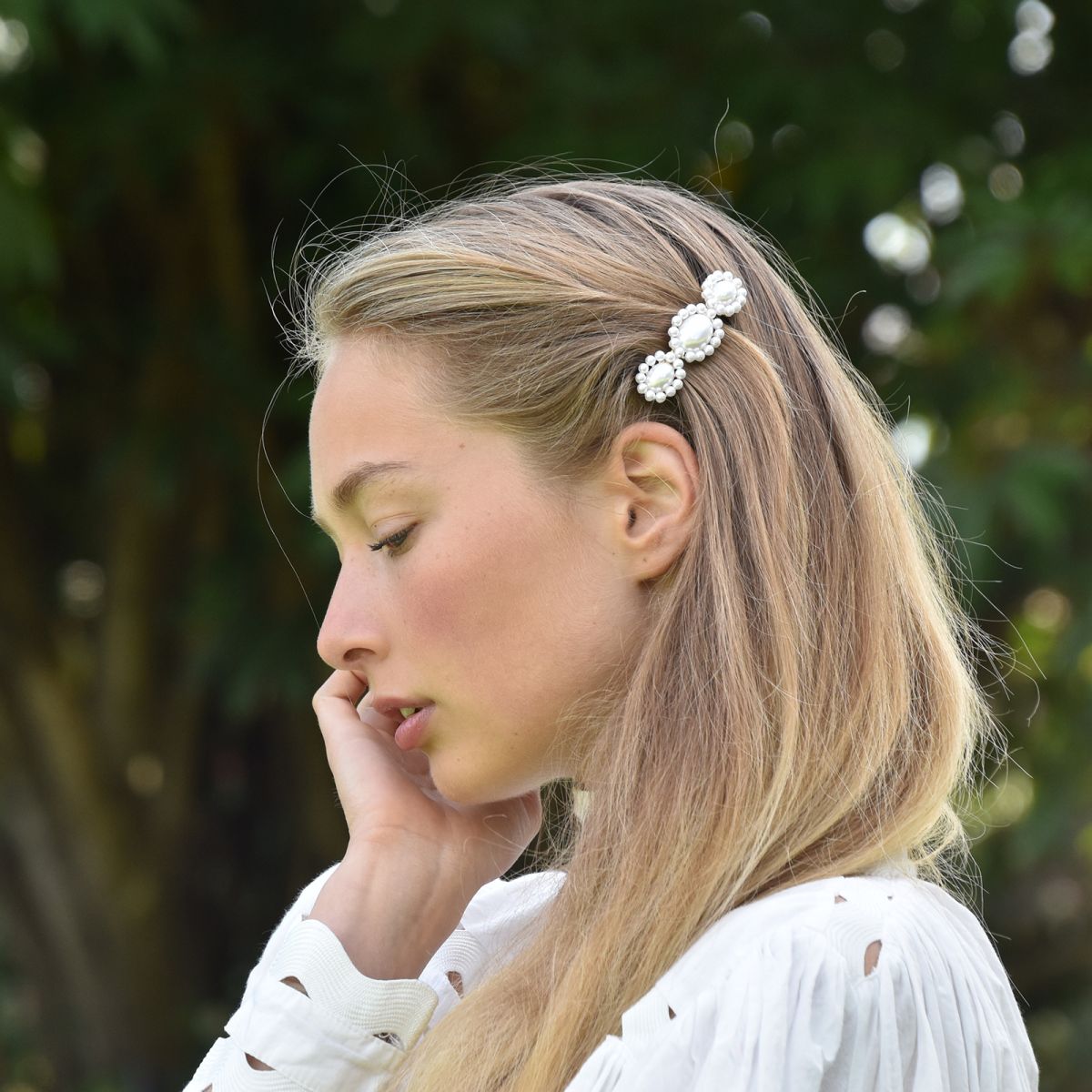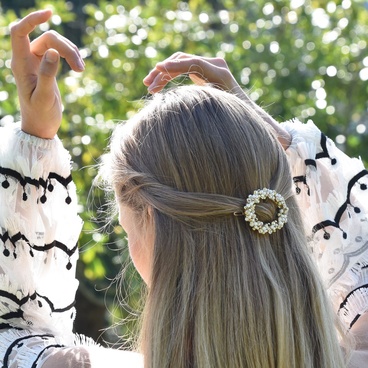 A freshwater pearl hair barrette offers a softer and more classic finish. It works beautifully with romantic hairstyles, polished looks, and occasion dressing.