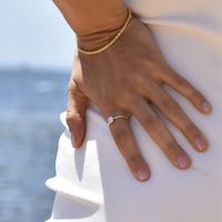 Chic, refined, with an enchanting hue. Introducing Callisto Artisan Moonstone Open Ring (Gold) - a delicate and elegant finger beauty for lovers of natural gemstones. This design features natural moonstone with a twisted ring band - smoothly polished to premium jewellery standard. The ring is made of solid sterling silver with 2.5 microns of 18k gold plating for a much thicker gold bond to the metal. Due to the softness of sterling silver, you can easily adjust the open ring band for the best fit. Flexible for fitting and versatile for styling. Hypoallergenic, nickel, cadmium and lead free.