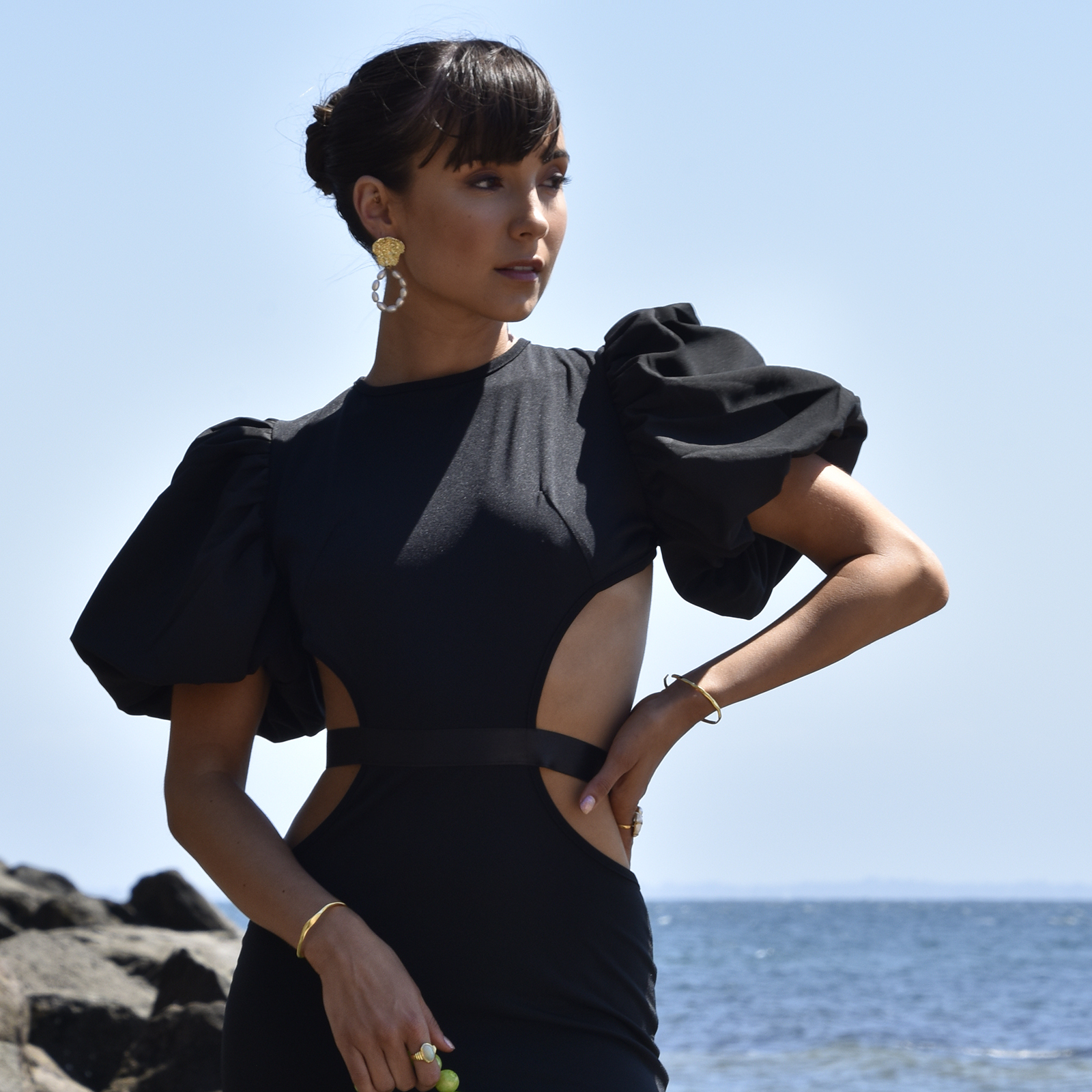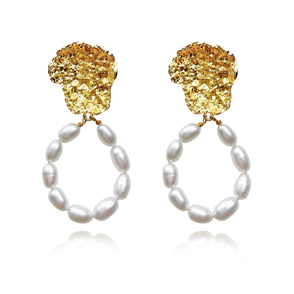 Chic, eye-catching, and outspoken. Introducing Camila 24K Sculpture Pearl Drop Earrings - an artisan handmade pearl love blending modern sculpture and pearl elegance in a statement. This design features a statement sculpture textual plate plated in 24K pure gold connected to freshwater pearl hoops. The pearls featured in this design are premium quality Western Australia natural freshwater pearls that have smooth surface, high lustre and a gorgeous shimmer. The textual sculpture plates are made of environmentally friendly brass (nickel free) with 2 microns of 24k pure gold plating (4 times thicker than gold plating used in average fashion jewellery). The earring posts are made of thickened solid sterling silver for hypoallergenic wear. An eye-catching and creative pearl beauty perfect for bridal, wedding, formal, semi-formal, dressy, creative fashion styling, coastal, chic, feminine, summer, beach, smart casual, casual style and more. Hypoallergenic, nickel, cadmium and lead free.