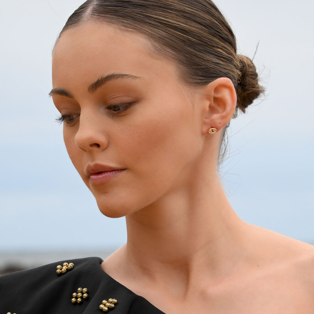 Cancer Artisan Zirconia Pavé Stud Earrings (Gold)