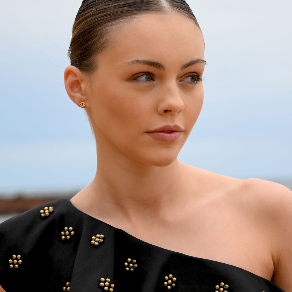 Each earring is meticulously crafted from solid sterling silver and finished with 2 microns of thick 18K gold plating, offering exceptional durability and a rich, luminous finish. The surface is set with Australian cubic zirconia pavé, creating a delicate constellation of light that catches and reflects with every movement.