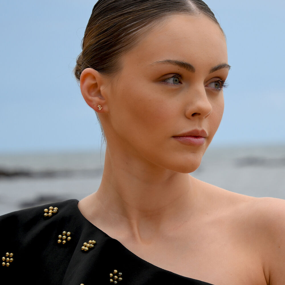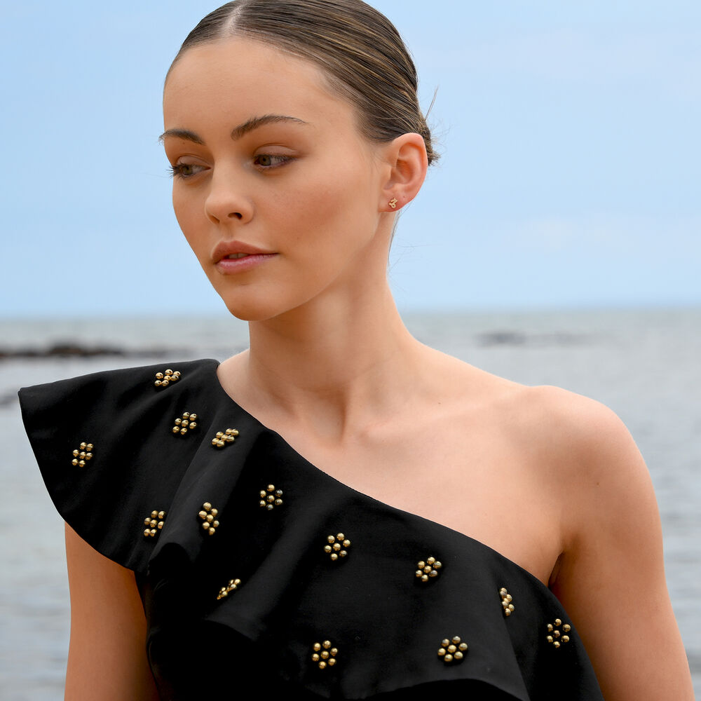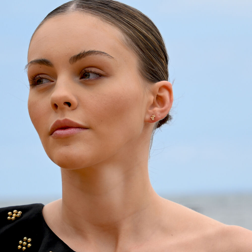 Capricorn Artisan Zirconia Pavé Stud Earrings (Gold)