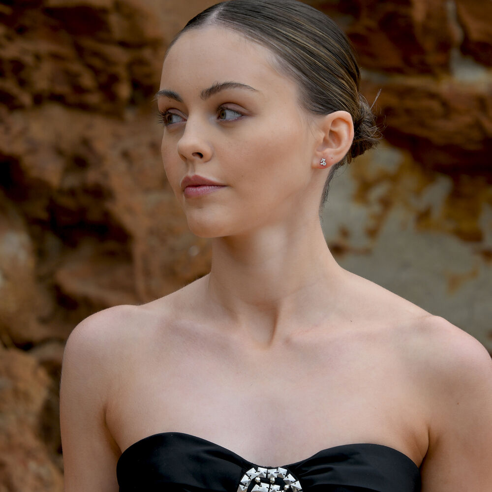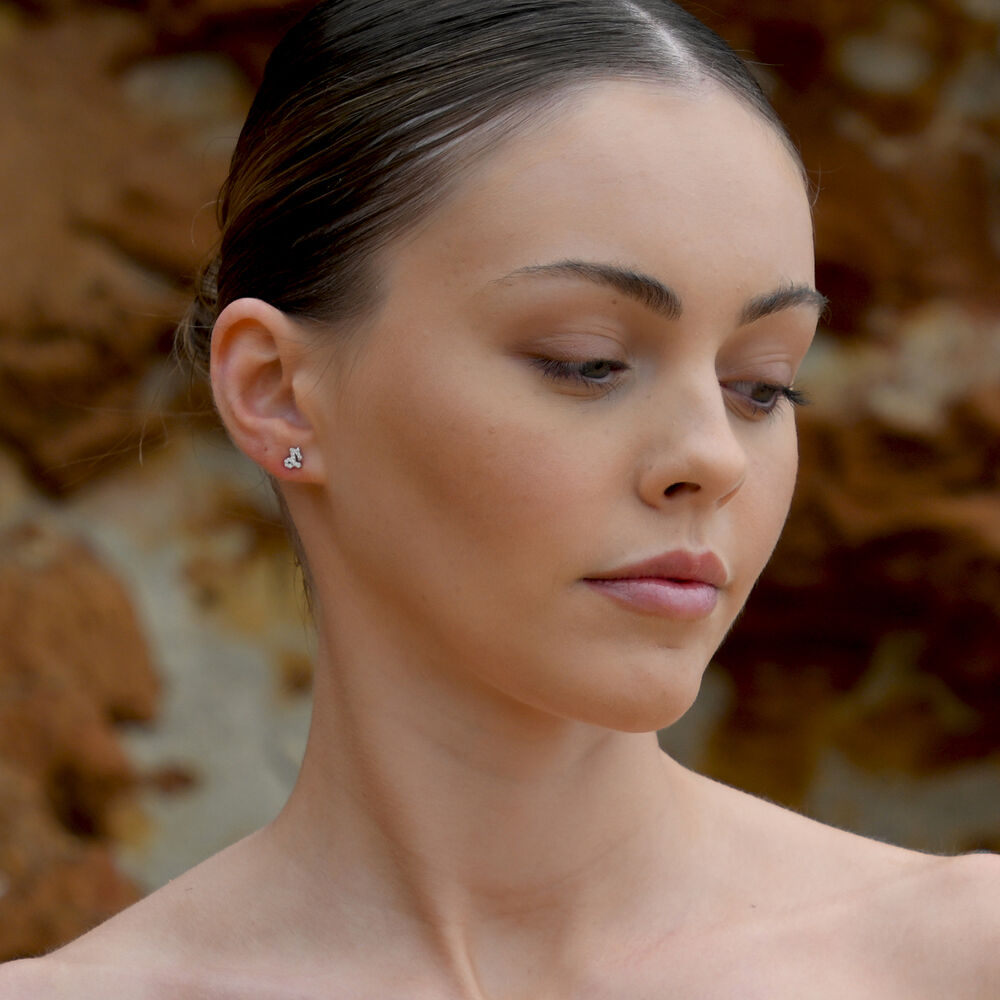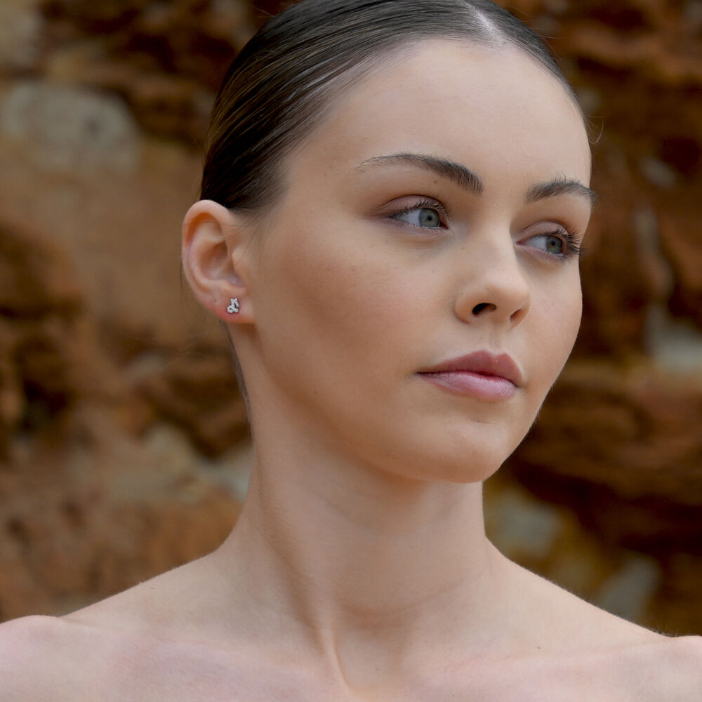 Each earring is meticulously crafted from solid sterling silver and finished with precious white rhodium plating, offering enhanced anti-tarnish protection and a brighter, more radiant silver shine. The surface is set with Australian cubic zirconia pavé, forming a delicate constellation of light that sparkles beautifully with every movement.