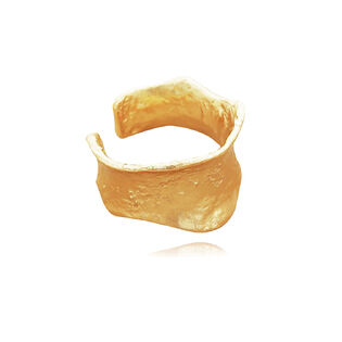 Modernism infused with rawness. Introducing Cascade Gold Vermeil Textured Open Ring — an artisan crafted gold vermeil finger beauty for those who appreciate quality, authenticity and textures. This design is inspired by the elements of Earth and Metal with a highlight of natural textures and a flared edge. It is crafted in solid sterling silver with 2.5 microns of 18K yellow gold (to Gold Vermeil Jewellery standard), giving the piece a warm, rich and luxurious gold shine that is tarnish restraint. This ring is fully resizable (with a default diameter of 22mm) and adjustable manually (due to softness of solid sterling silver) so you can adjust for a perfect fit. An outspoken and enduring statement ring art that is perfect for artsy, modern, creative, minimalist, Nordic, smart casual, casual and everyday wear. Hypoallergenic, nickel, cadmium and lead free.