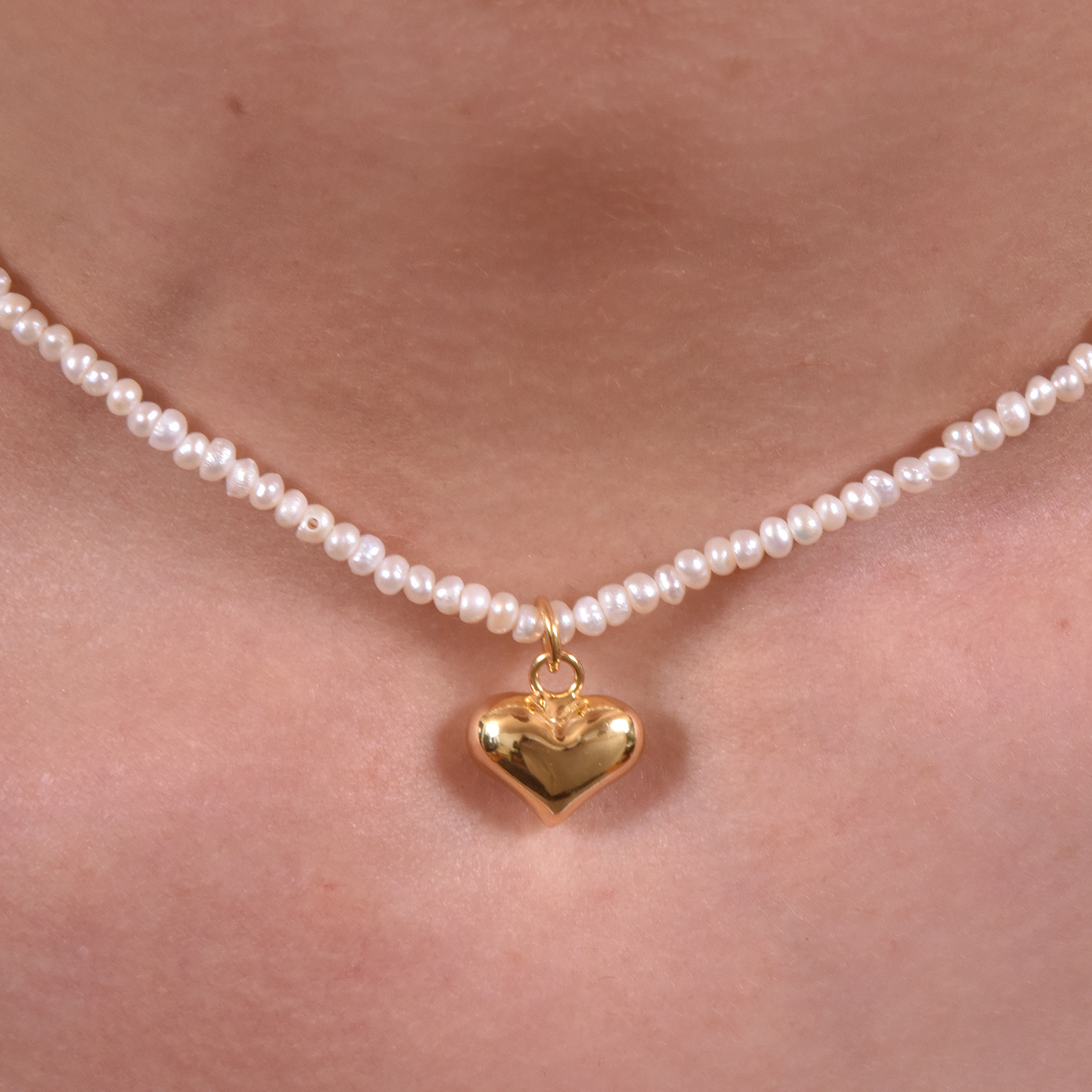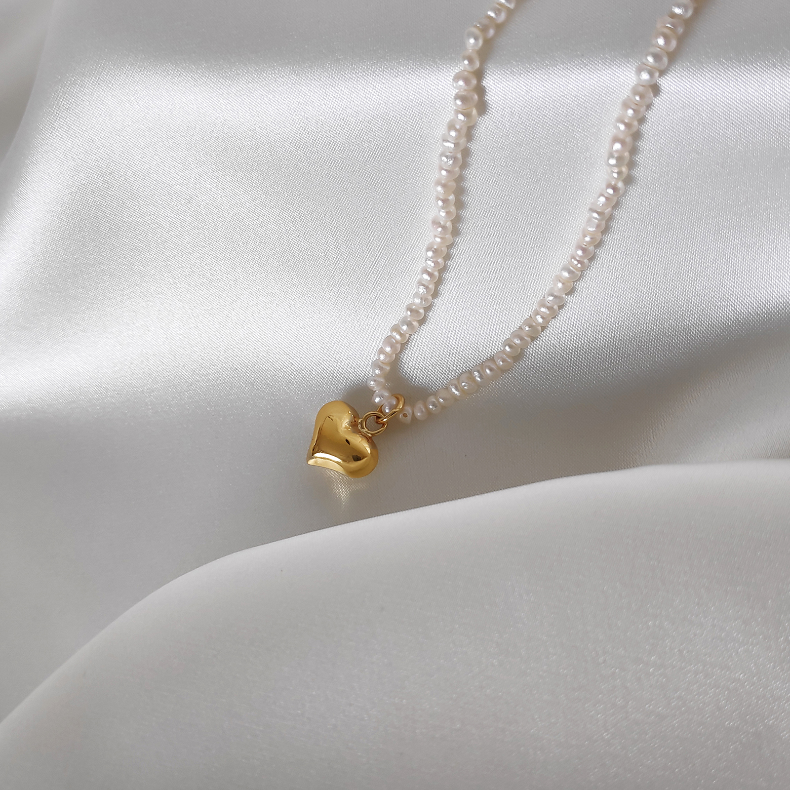 Sold OutFinest freshwater pearls paired with an adorable gold heart pendant. Introducing Catalina Freshwater Pearl Heart Pendant Necklace — a hand-threaded natural pearl beauty exuding chic elegance. This neckpiece features the finest natural rice-shaped freshwater pearls and a cute heart drop made of solid sterling silver with 2.5 microns of 18K gold plating. The link of the necklace is also made of solid sterling silver with 18K gold plating for hypoallergenic wear and durability. This neckpiece also comes with a 5.5cm adjustable link allowing a more flexible length control. A modern and feminine fine piece for timeless styling. Perfect for modern, coastal, chic, feminine, summer, semi-formal, dressy, girly, casual styles and more. Hypoallergenic, nickel, cadmium and lead free.