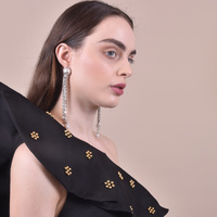 A shimmering statement that is elegant and 'dressy-ready'! introducing Chandler Dangling Elegance Earrings - when elegance is expressed in a sense of daring. This eye-catching rhinestone tassel drop design makes a perfect chic statement that 'uplifts' your everyday style in a blink of an eye. Perfect for modern dresses, jumpsuits, smart casual and evening wear. Available for both pierced and non-pierced ears.