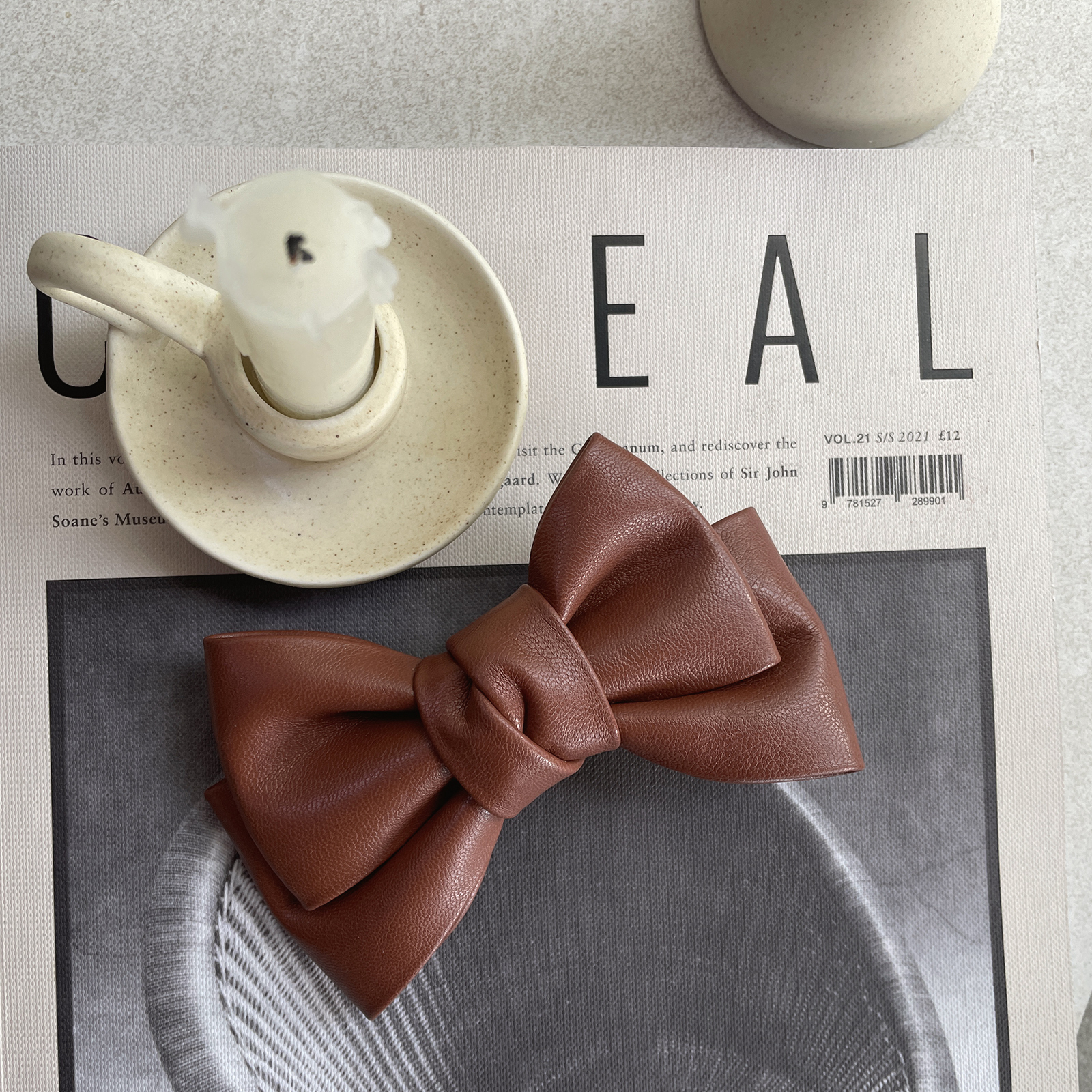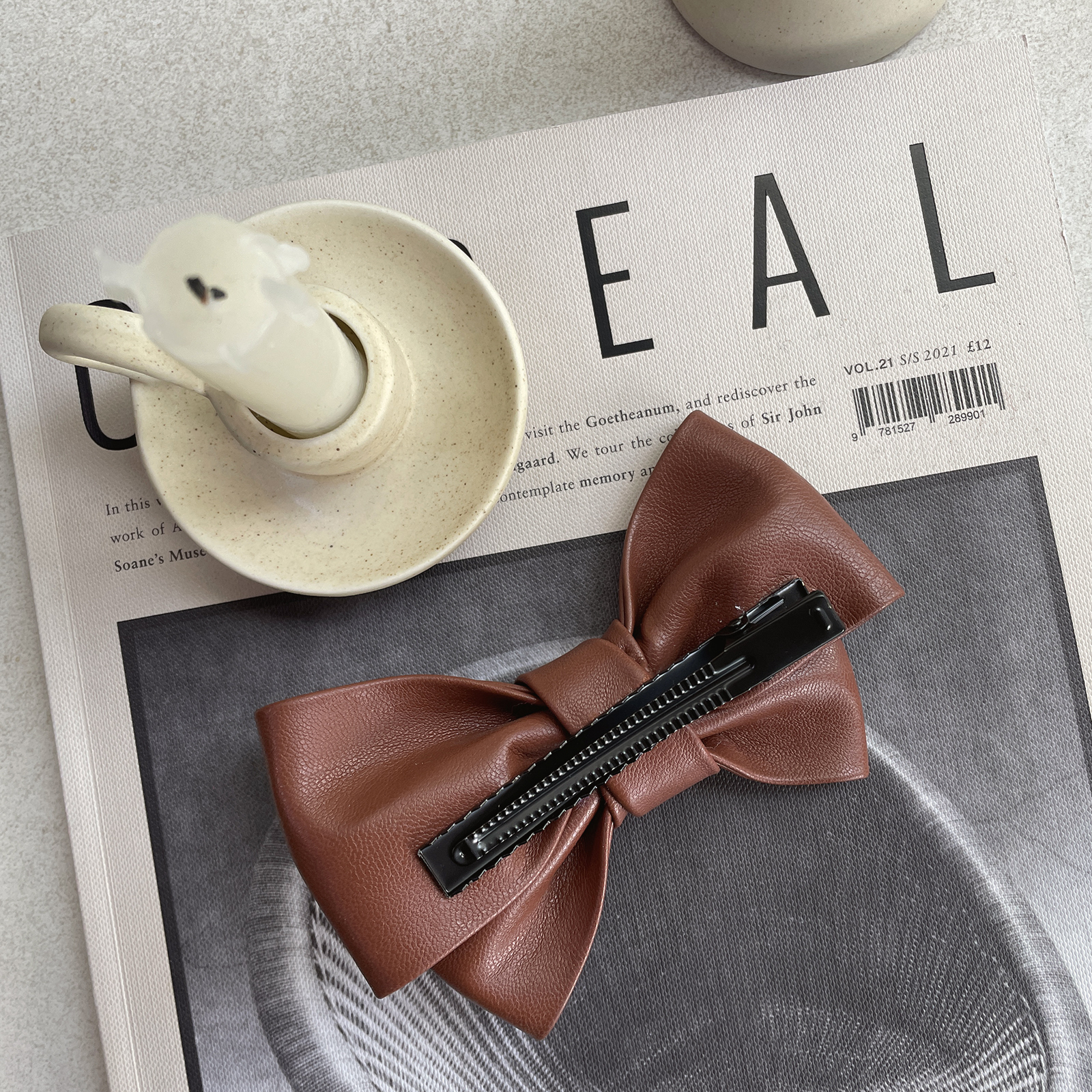 Vintage chicness blended with modernism. Introducing Charlotte Bow Tie Hair Clip (Brown) - a girl-heart hair piece for a trendy touch. This design features a PU leather bow tie with an alligator clip at the back. You can style your hair in different ways with this clip, with or without hair ties. It comes in 6 different colours. Take your pick. Suitable for vintage, modern, creative, chic, girly, smart casual, casual styles and more. Also suitable for teens.