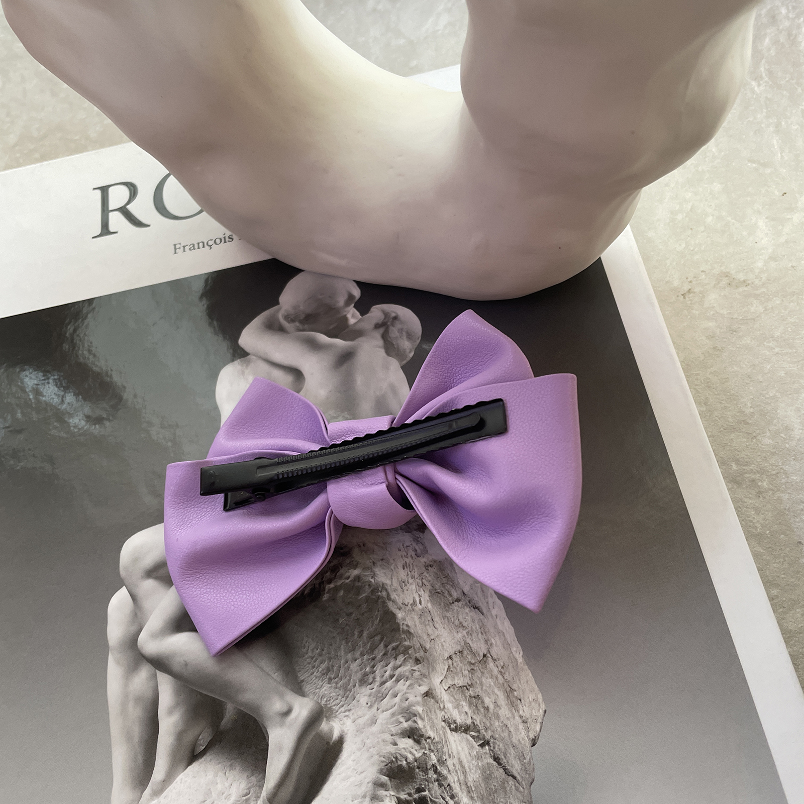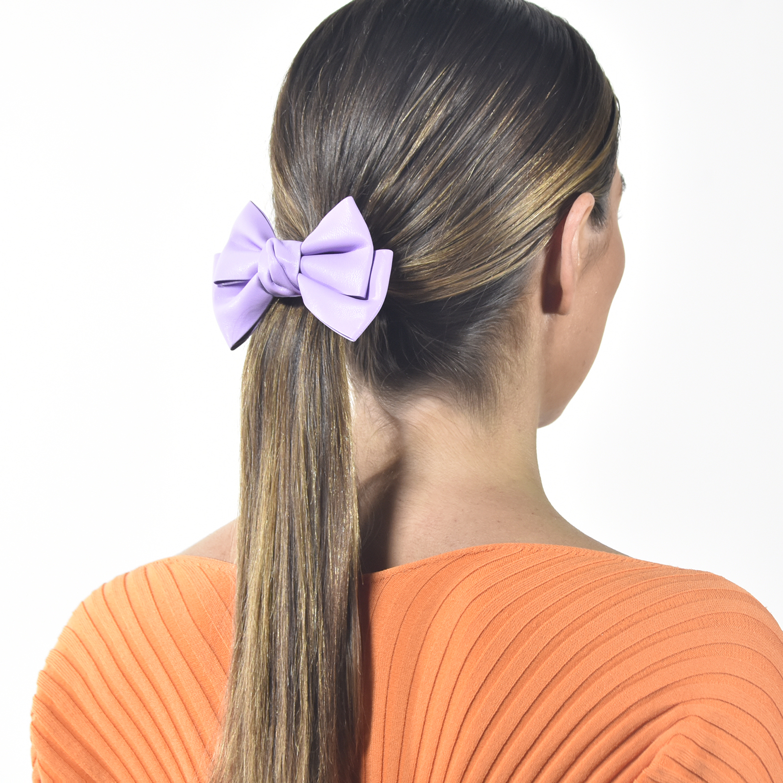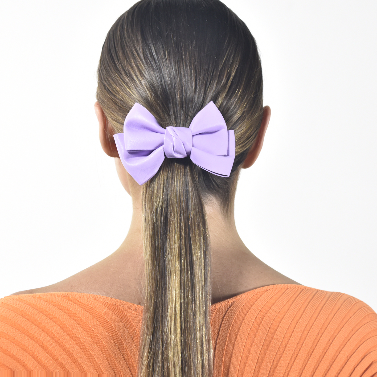 Vintage chicness blended with modernism. Introducing Charlotte Bow Tie Hair Clip (Lilac) - a girl-heart hair piece for a trendy touch. This design features a PU leather bow tie with an alligator clip at the back. You can style your hair in different ways with this clip, with or without hair ties. It comes in 6 different colours. Take your pick. Suitable for vintage, modern, creative, chic, girly, smart casual, casual styles and more. Also suitable for teens.
