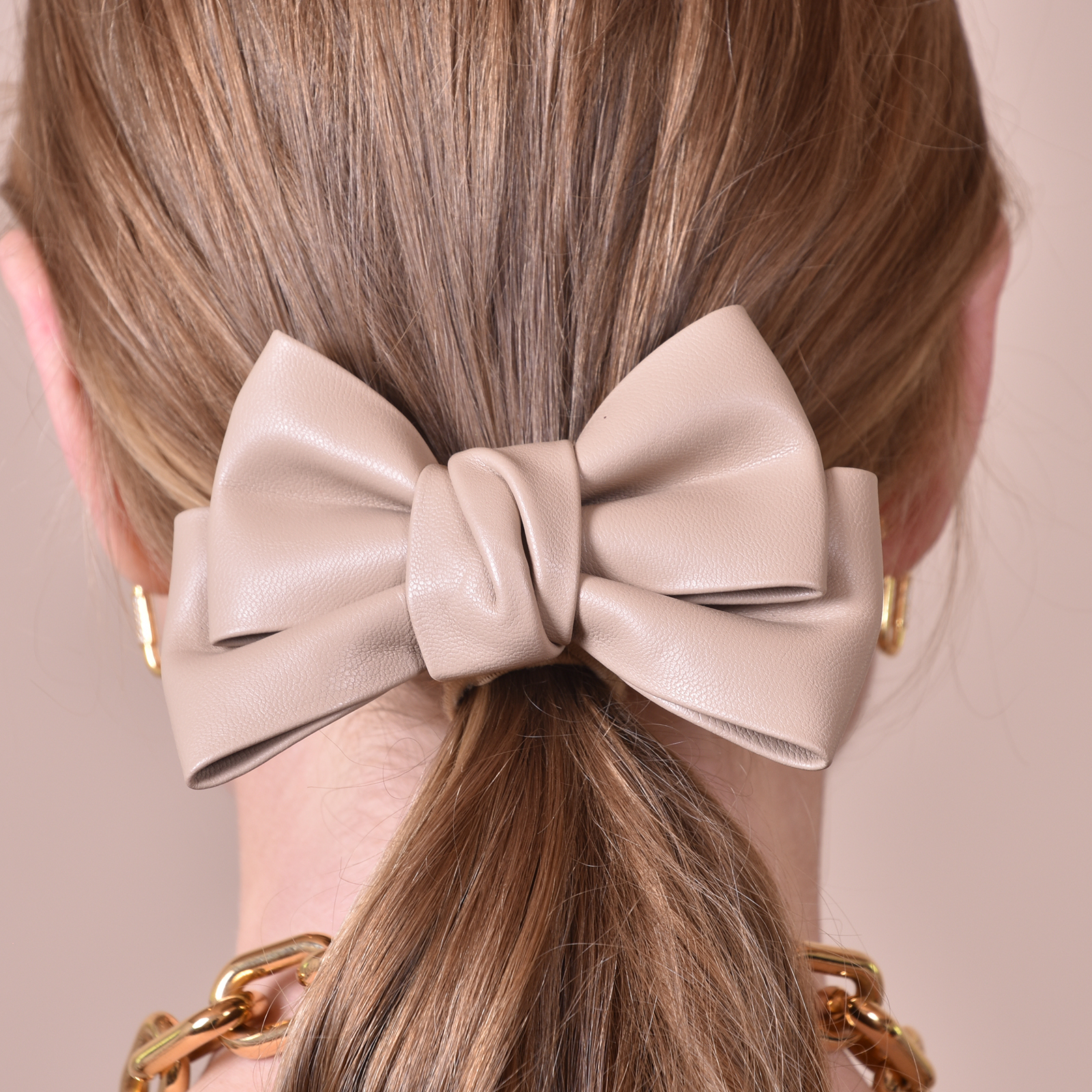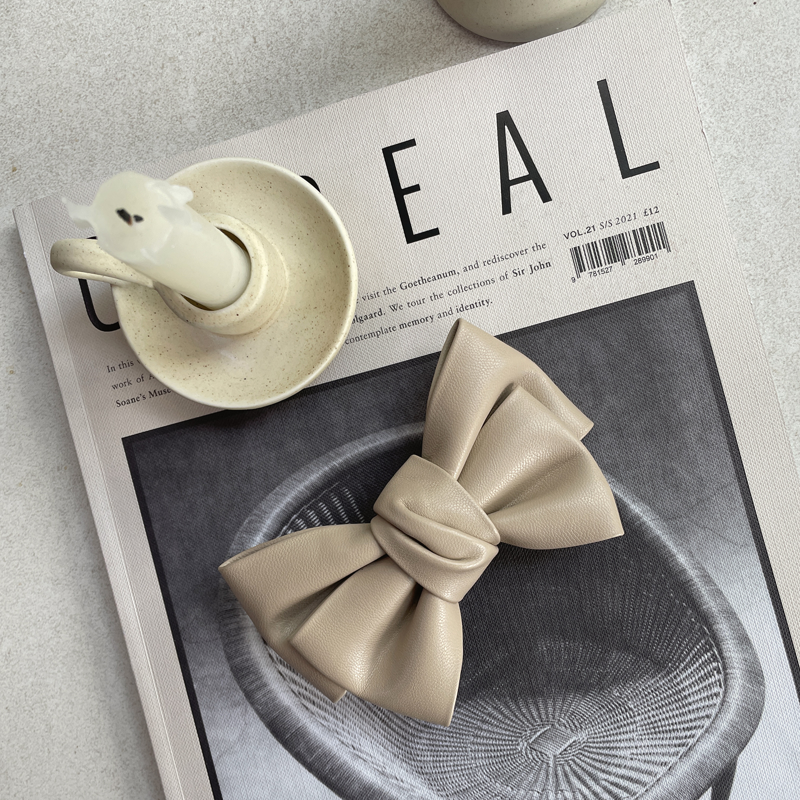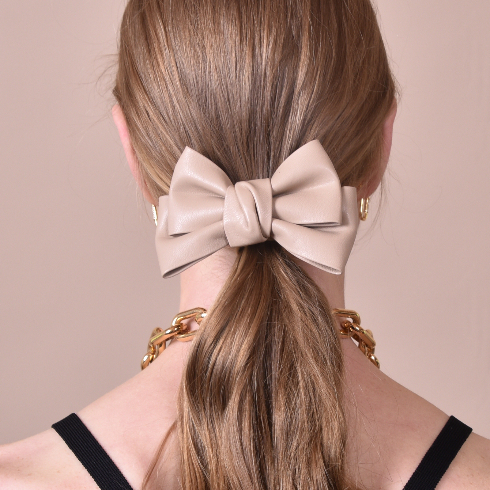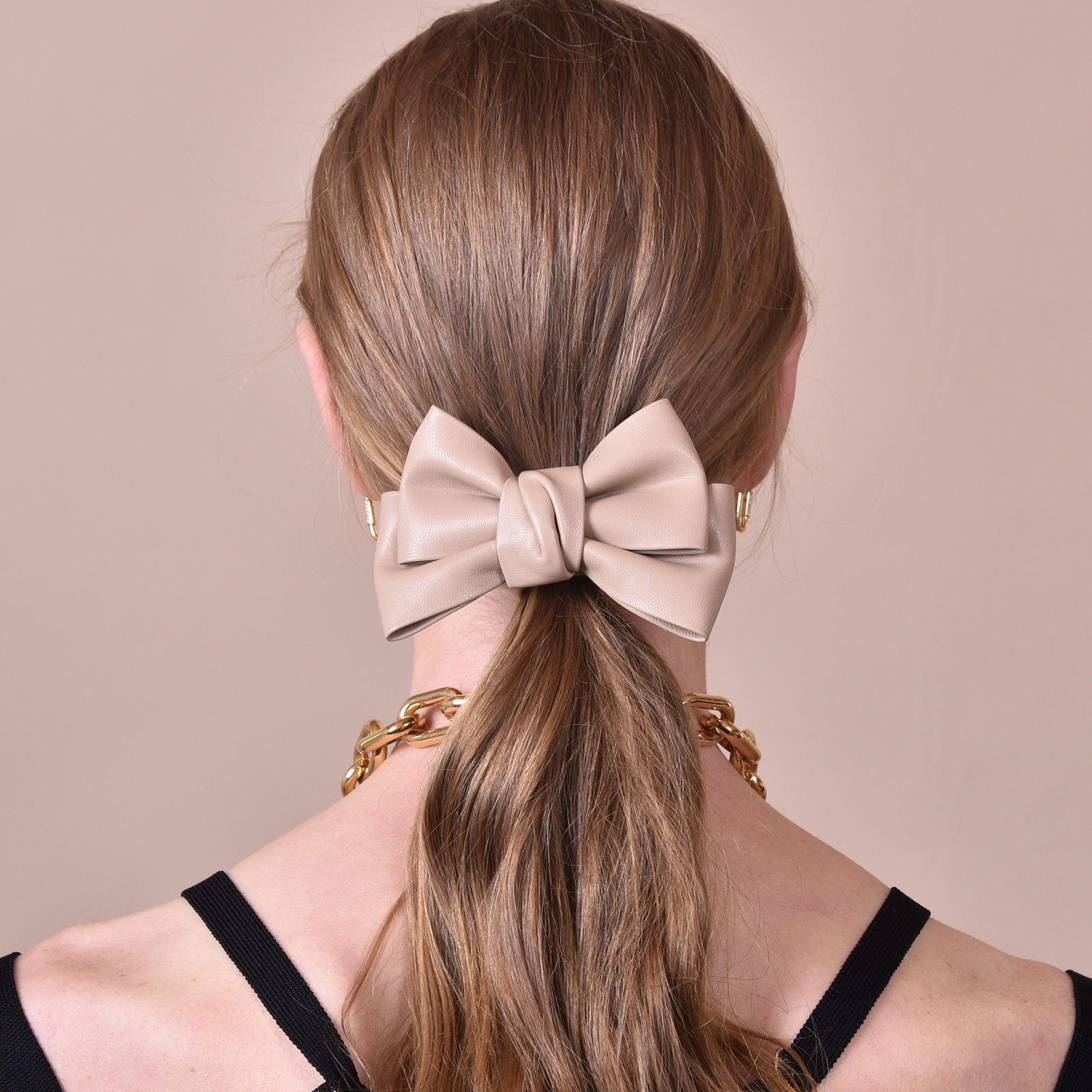 Vintage chicness blended with modernism. Introducing Charlotte Bow Tie Hair Clip (Tan) - a girl-heart hair piece for a trendy touch. This design features a PU leather bow tie with an alligator clip at the back. You can style your hair in different ways with this clip, with or without hair ties. It comes in 6 different colours. Take your pick. Suitable for vintage, modern, creative, chic, girly, smart casual, casual styles and more. Also suitable for teens.