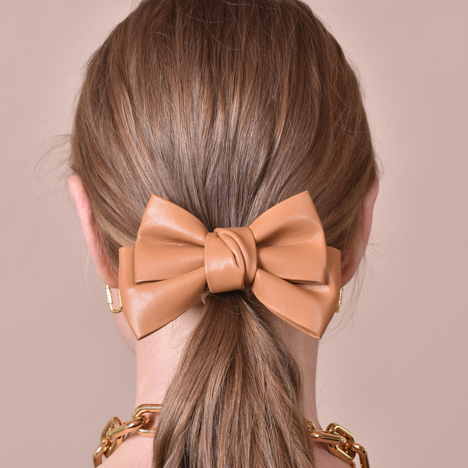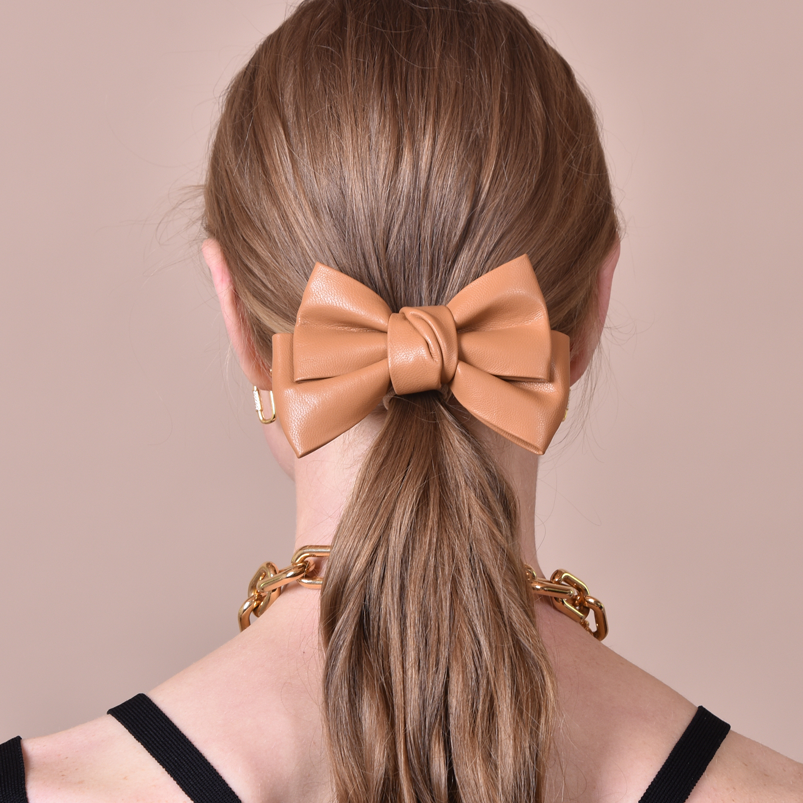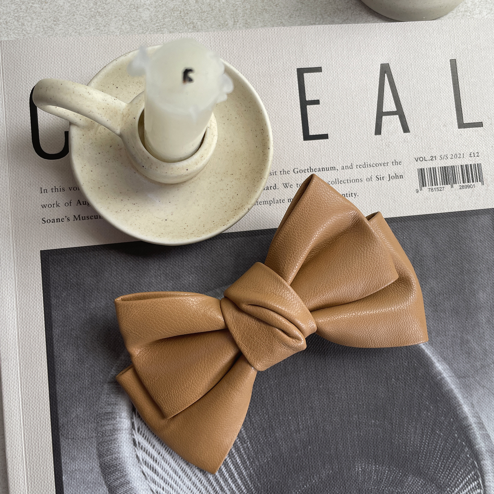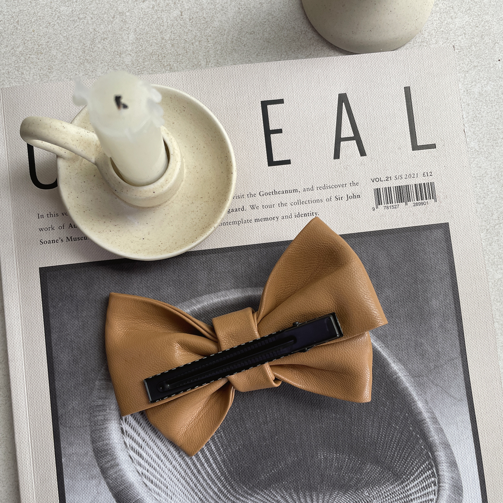 Vintage chicness blended with modernism. Introducing Charlotte Bow Tie Hair Clip (Turmeric) - a girl-heart hair piece for a trendy touch. This design features a PU leather bow tie with an alligator clip at the back. You can style your hair in different ways with this clip, with or without hair ties. It comes in 6 different colours. Take your pick. Suitable for vintage, modern, creative, chic, girly, smart casual, casual styles and more. Also suitable for teens.