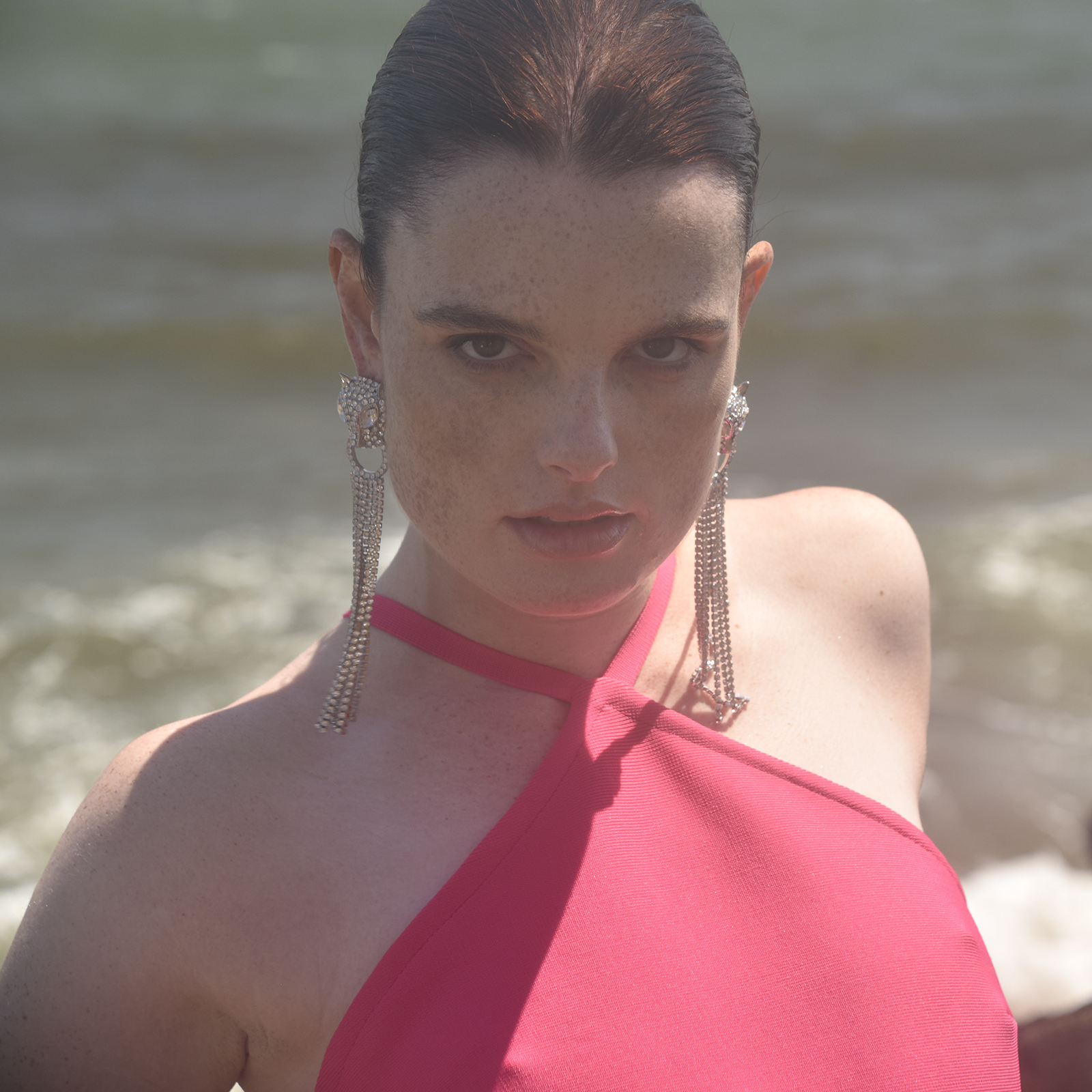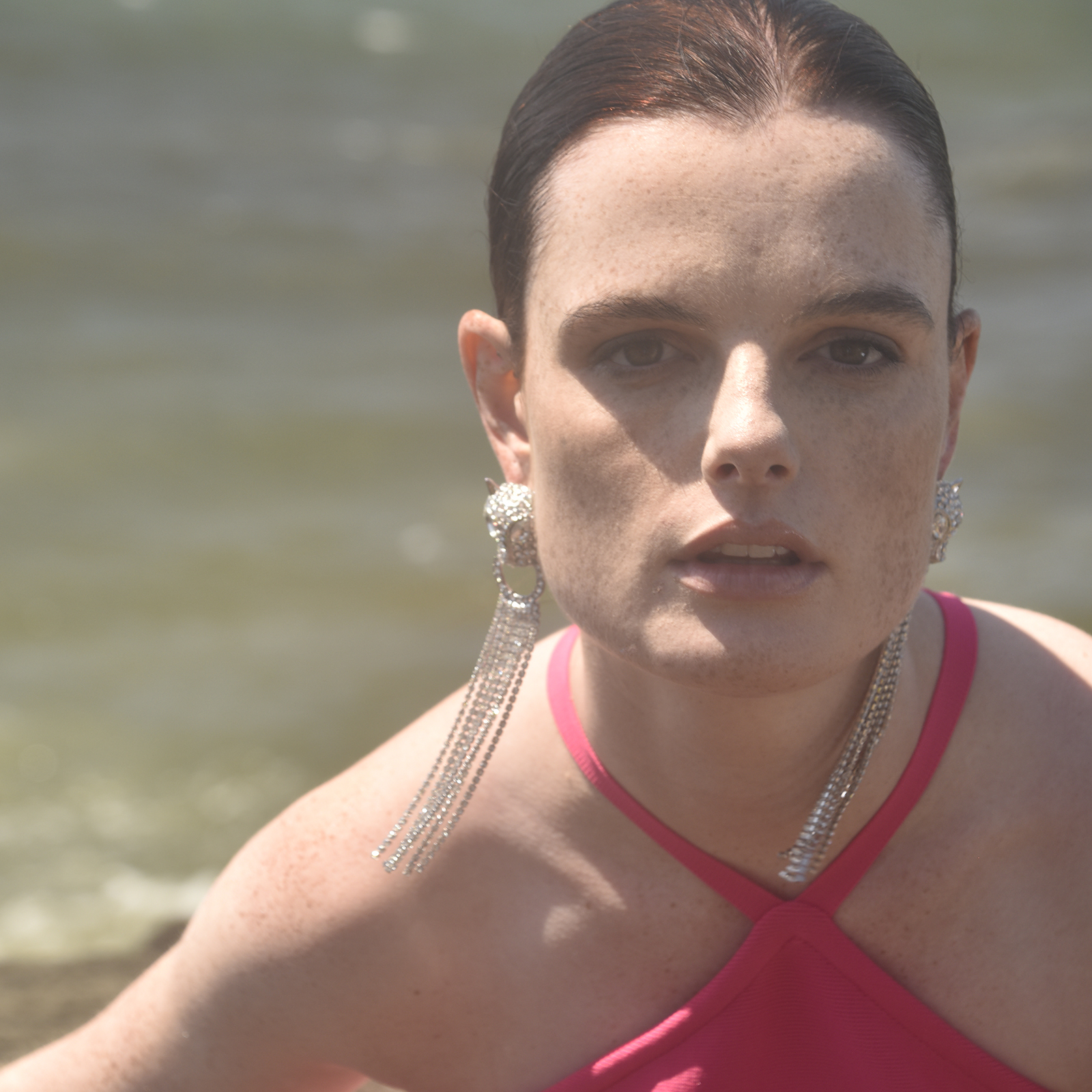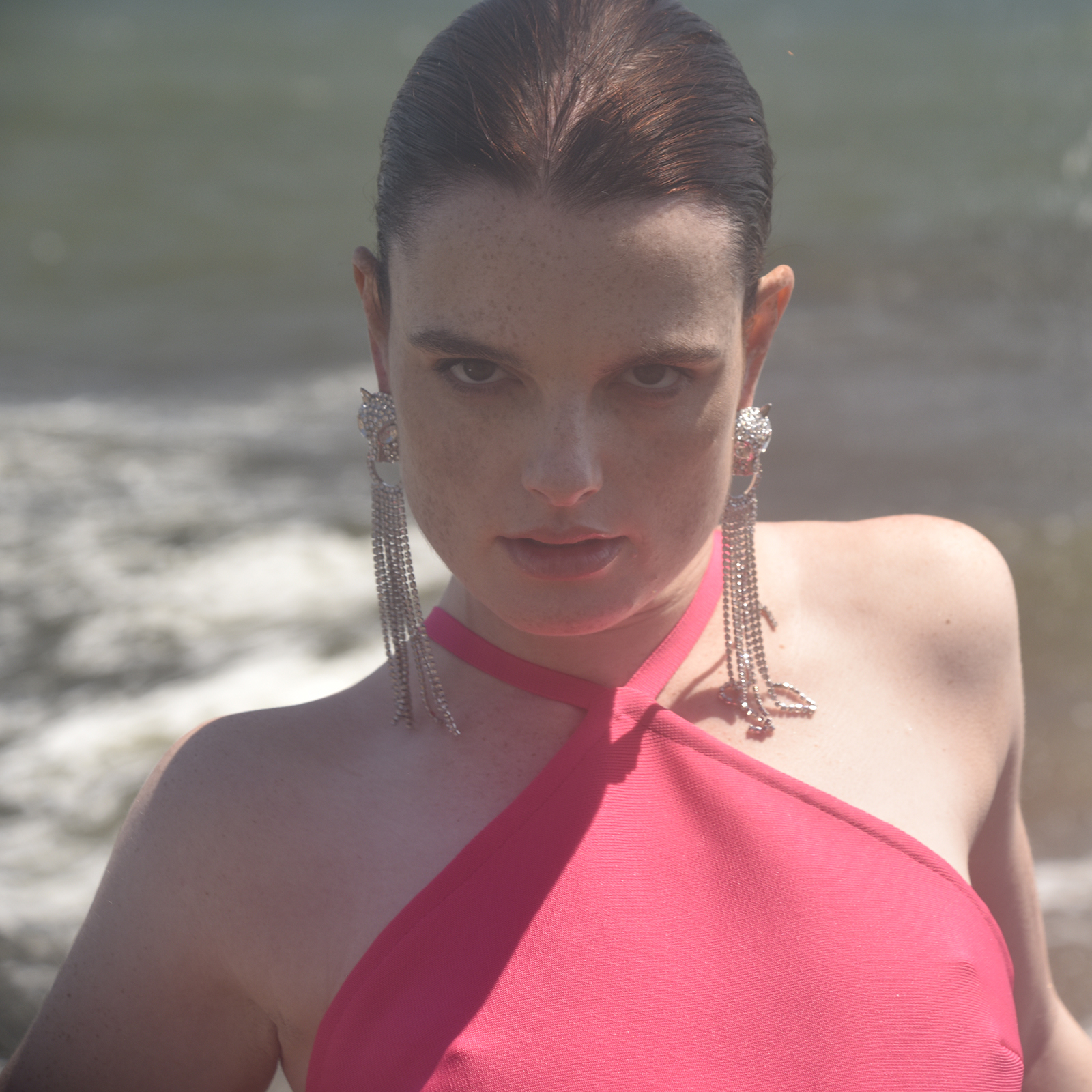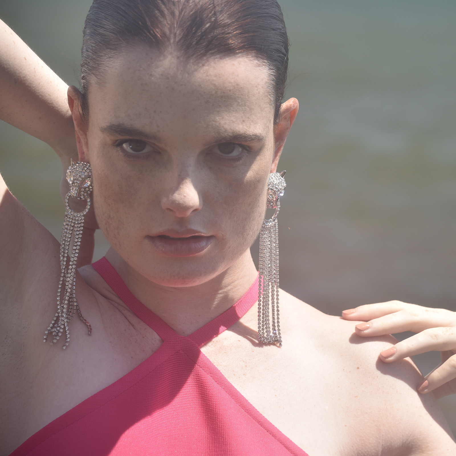Love like fortune, favours the bold. Introducing Chase Diamante Leopard Statement Earrings (Oversized) - an outspoken and daring statement for an elevated and wild look upgrade. This design features a bold leopard head holding a diamante-embellished hoop from which seven strands of diamante strings hang. Watch the dangling movement bring out the shimmering sparkles and fearlessness as you move. The earrings are made in environmentally friendly alloy with silver plating. Perfect for modern, retro, high fashion, glamour, fashion event, runway styling, bold, chic, smart casual styles and more.