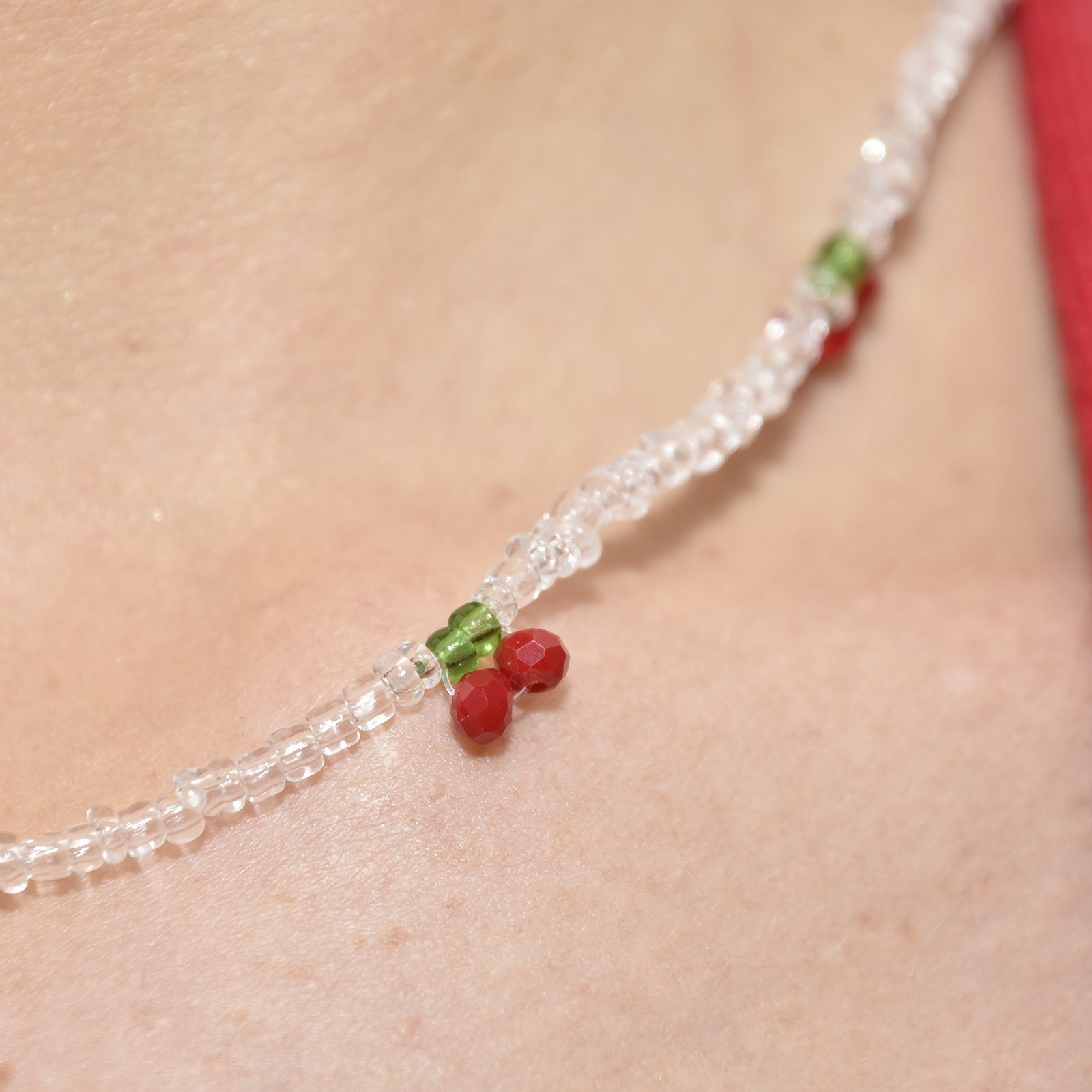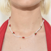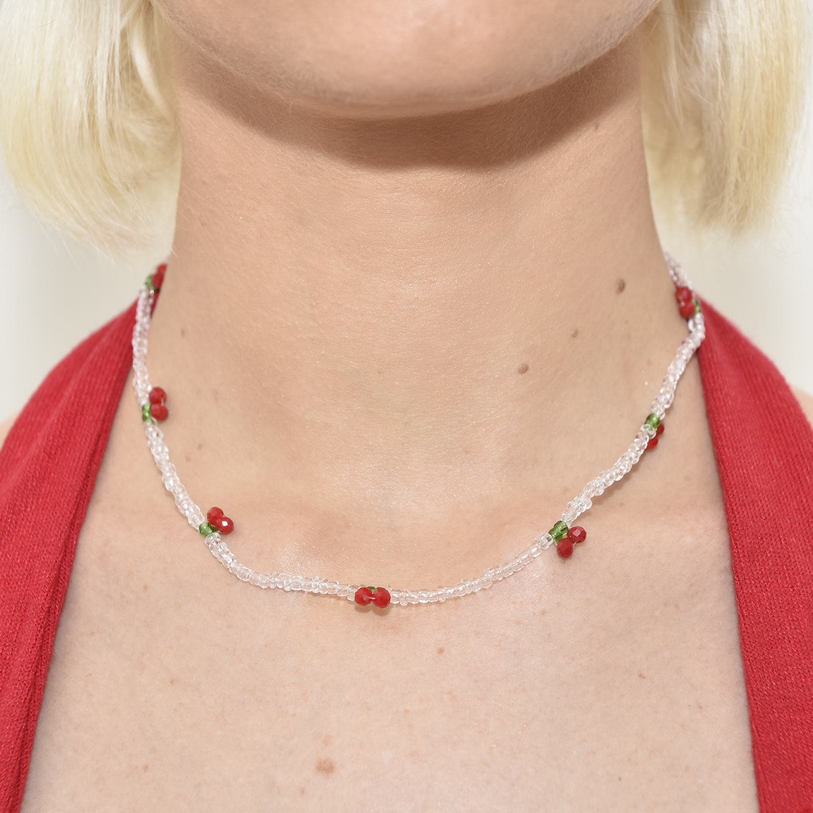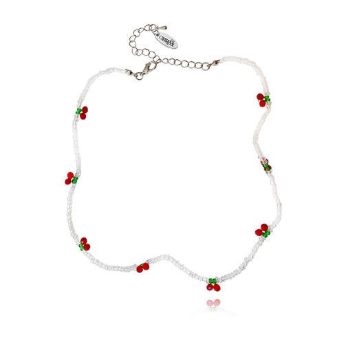She is sweet as the cherry on top. Introducing Cherry-ish Beaded Necklace (Clear) - a chic and bubbly necklace adding a pop of cherry red to your casual styling. This design features red cherry-shaped beads punctuating a clear bead necklace. The necklace is 45cm long including a 5cm adjustable link for your preferred fit. Suitable for causal and smart casual occasions and for women and girls of all ages.
