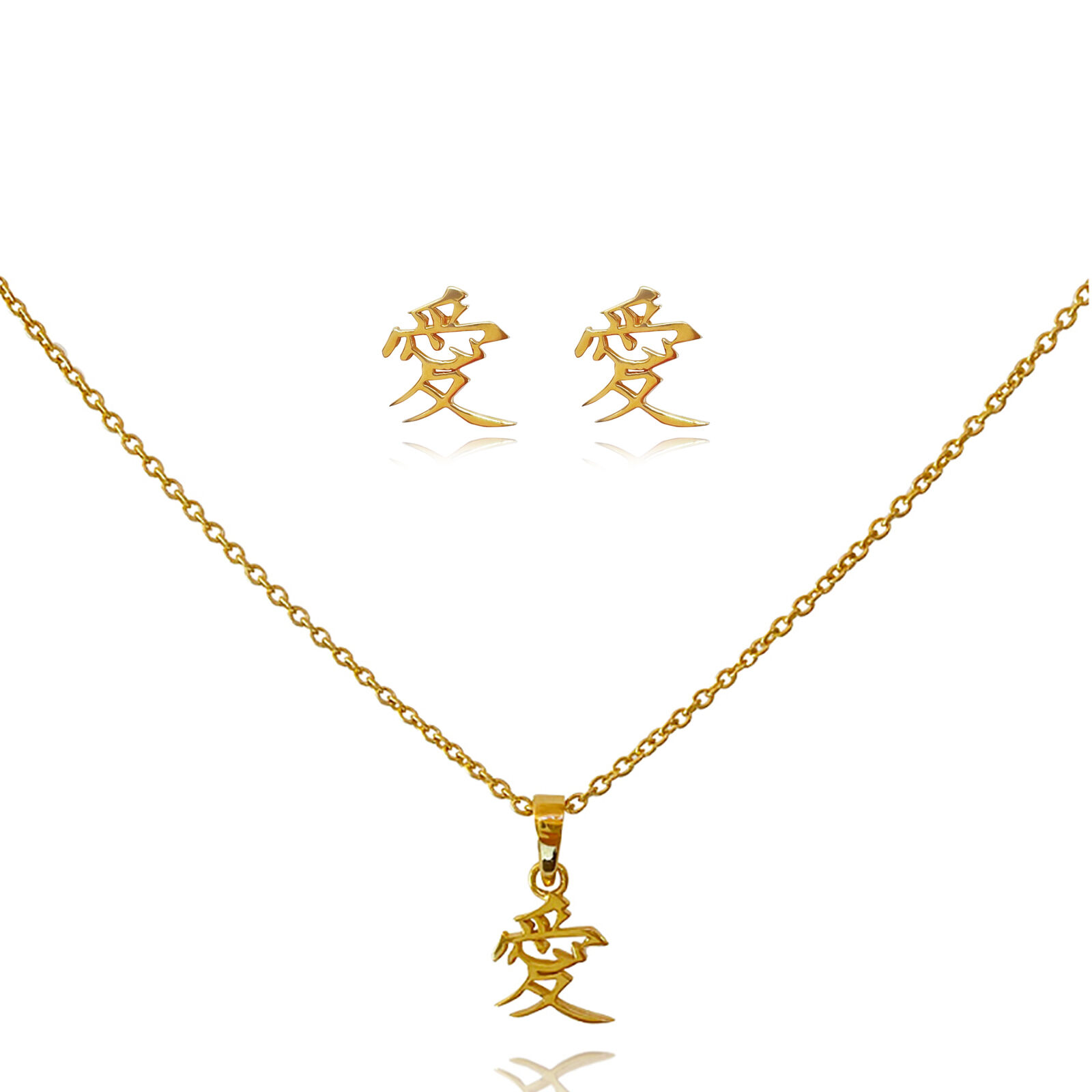 This Gift Set includes: Chinese Love Earrings (24K Gold Filled) + Chinese Love Pendant Necklace (24K Gold Filled)