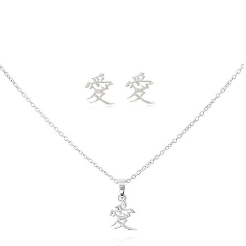 This Gift Set includes: Chinese Love Earrings (Silver) + Chinese Love Pendant Necklace (Silver)