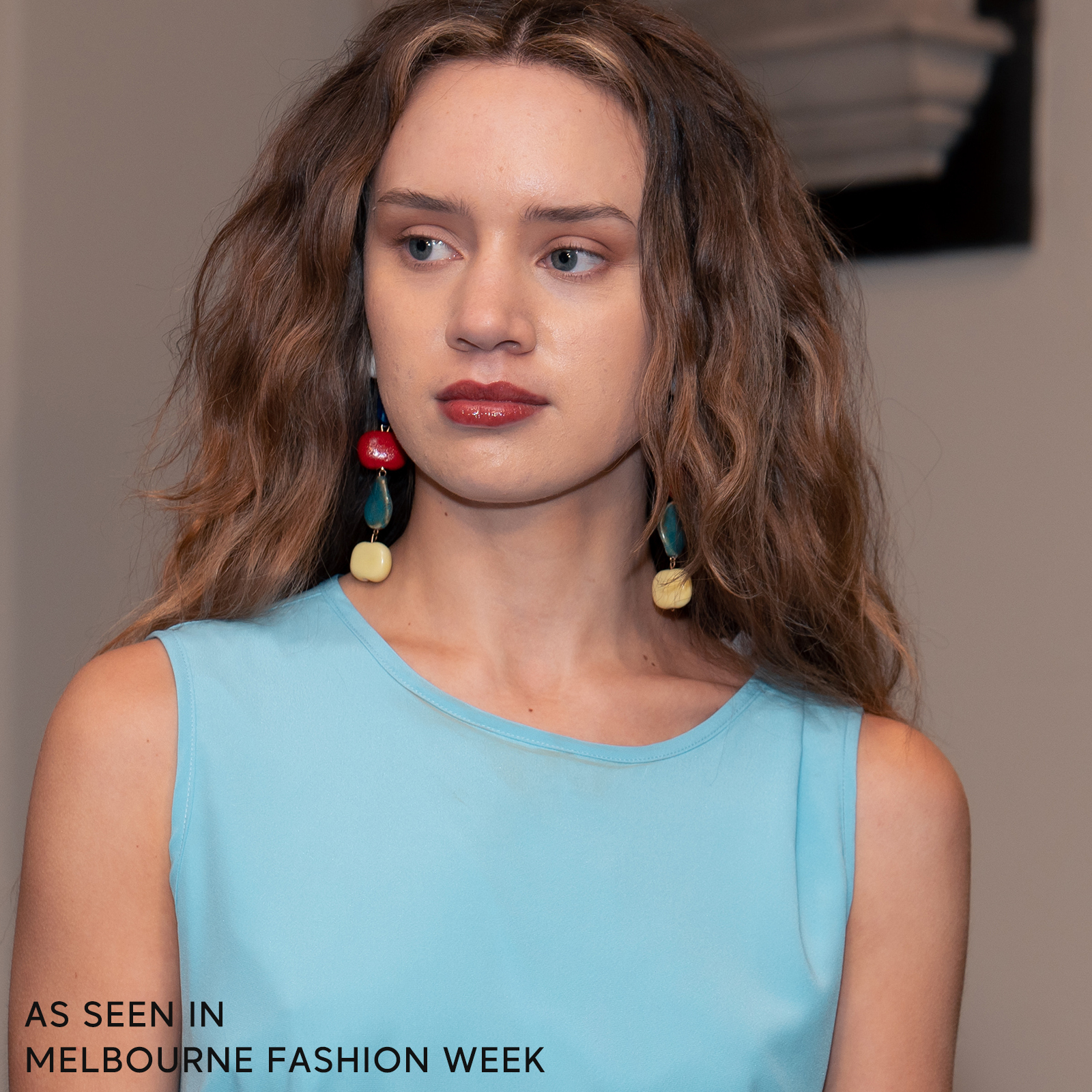 Simple, colourful and eye-catching, this pair of Claudette colour drop statement earrings strike a sense of renaissance of childhood simple joy. Perfect for all seasons with a uplifting and vibrant presence.