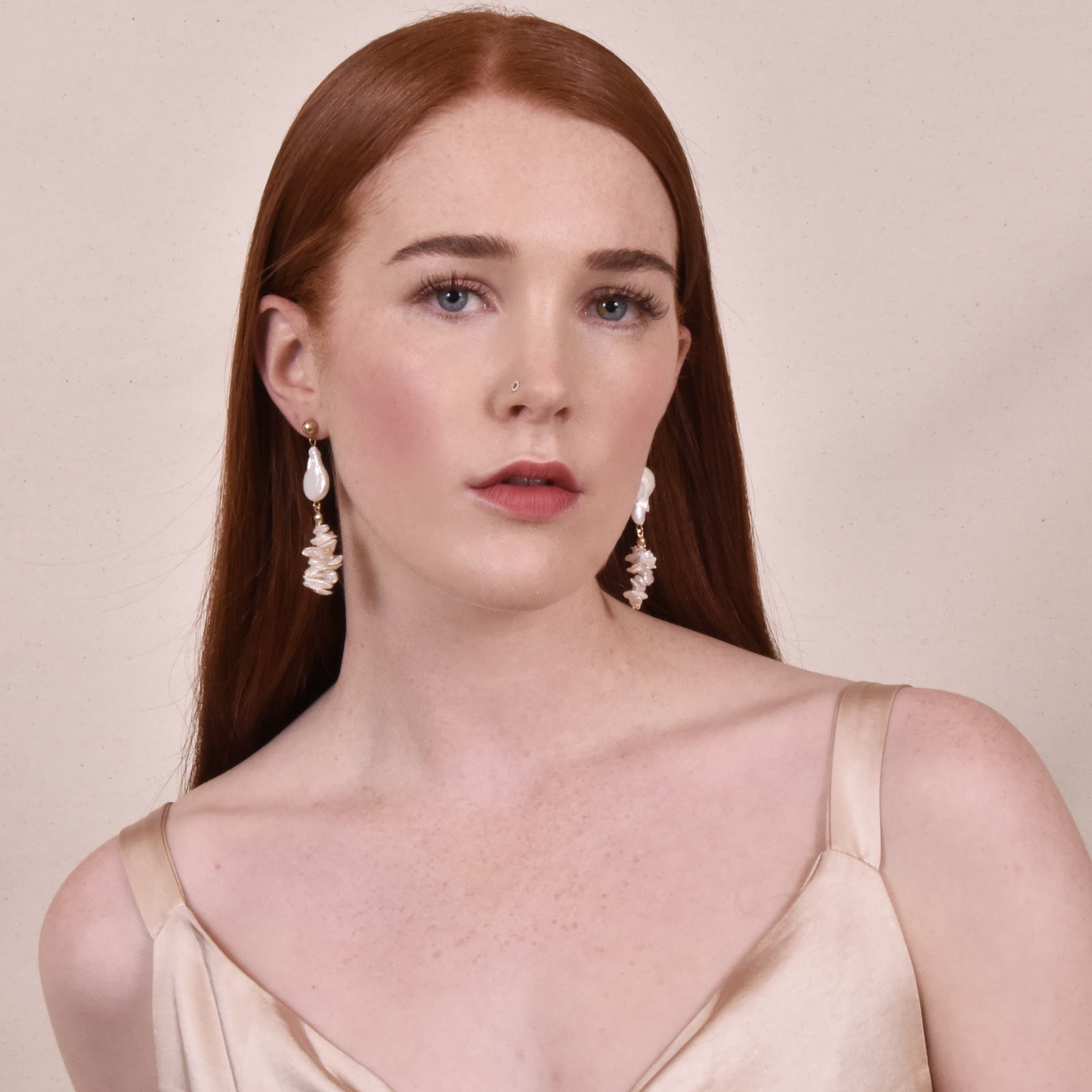 When originality and textures blended in an artsy coastal fashion, introducing Cleo Mismatching Pearl Stack Earrings. This coastal design features irregular shaped freshwater pearls and natural original shaped mother of pearls and will make your coastal styling effortless and charming. Perfect for coastal, beach, formal, semi-formal and natural pearl lovers who fancy something different. Available for both pierced and non-pierced ears.