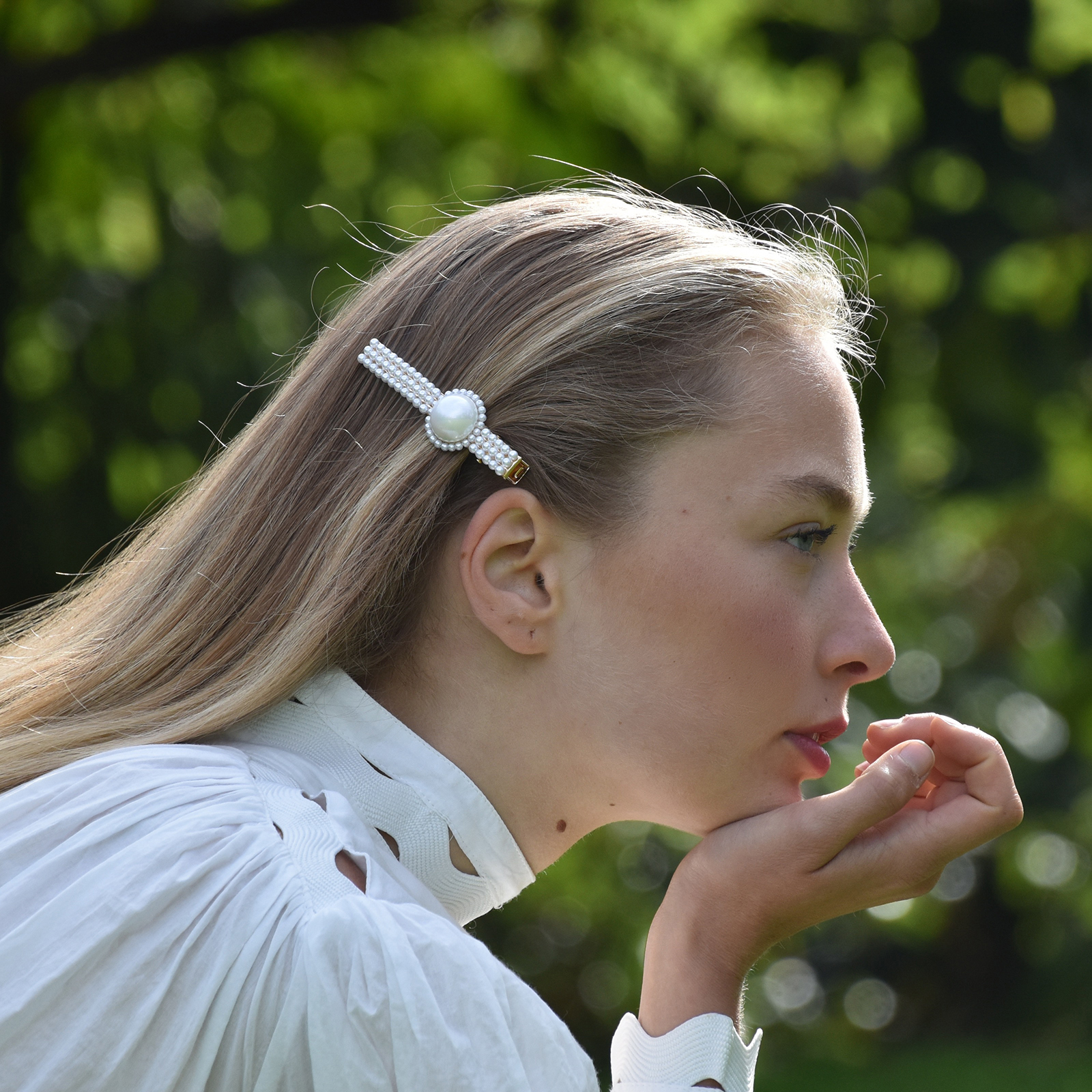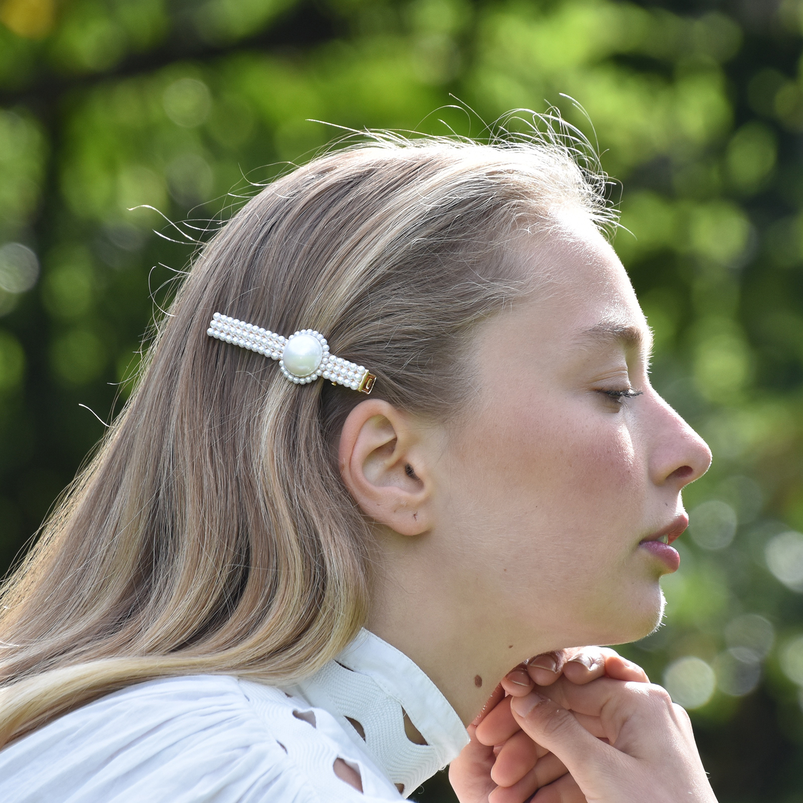An elegant pearly barrette that is quiet and charming. Introducing Clio Vintage Pearly Barrette – a sweet piece for pearly style muses who love to accessorise. This piece features a row of simulated pearls with a big round faux pearl in the middle – holding your hair while adds a subtle shine. Perfect for modern, vintage, chic, girly, casual styles and more. Suitable for kids and teens.