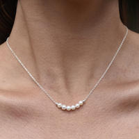 Chic, elegant and always appropriate. Introducing Coralie Freshwater Pearl Pendant Necklace - an artisan handcrafted natural pearl beauty that speaks of beauty combined with softness and strength. This design features handpicked premium quality natural freshwater pearls with a consistent shape, smooth surface and a gorgeous high lustre. The pendant is made of 6 natural freshwater pearls nestled side by side with 2 solid sterling silver beads fixed on each end. The necklace is made in solid sterling silver with precious white rhodium plating for hypoallergenic, enduring wear, a brighter silver shine and an extra anti-tarnish protection. This necklace is 45cm long including a 5cm adjustable link (adorned with 1 freshwater pearl) to create the length that you prefer. Perfect for modern, retro, coastal, dressy, chic, feminine, necklace layering, smart casual style, casual, everyday styles and more. Hypoallergenic, nickel, lead, and cadmium free.