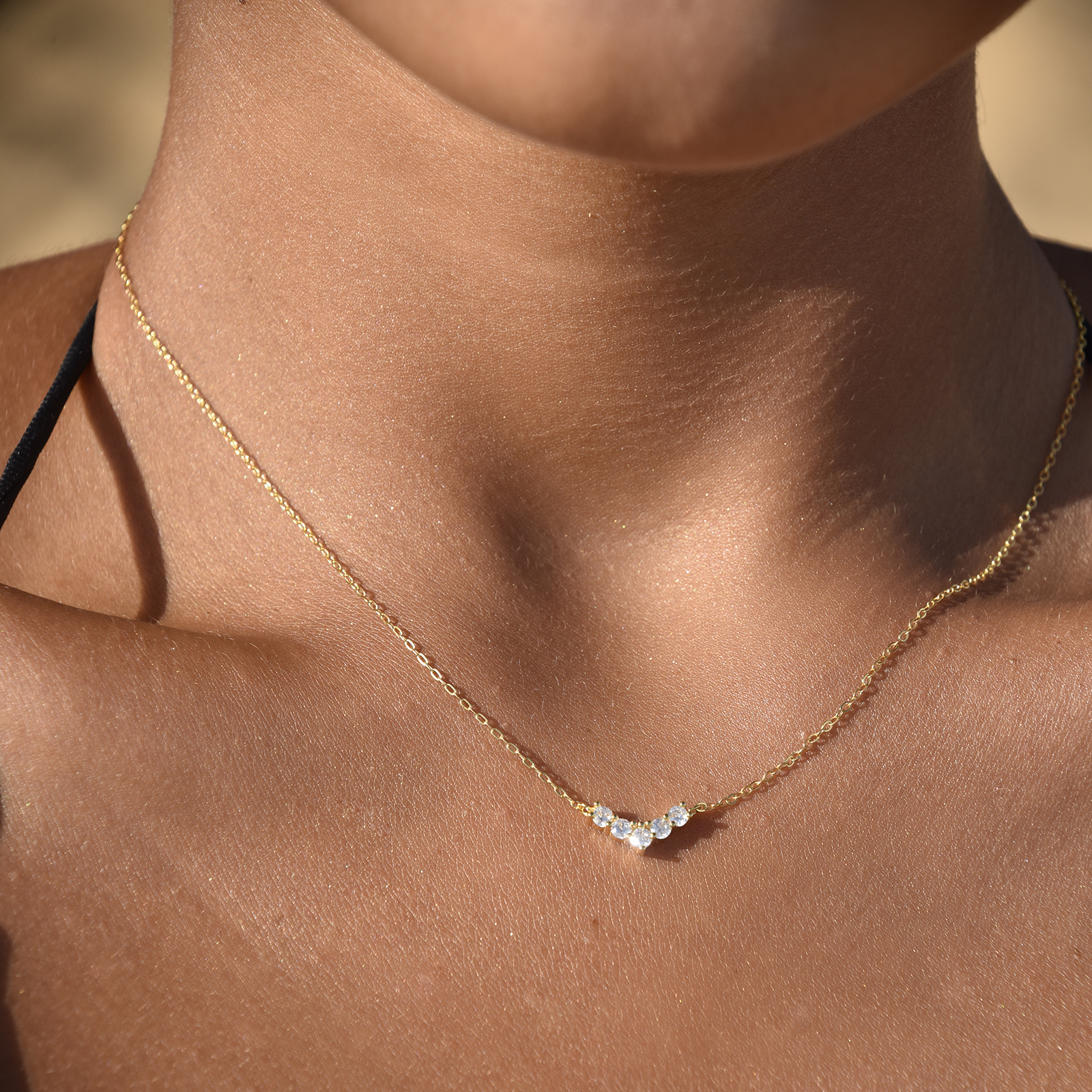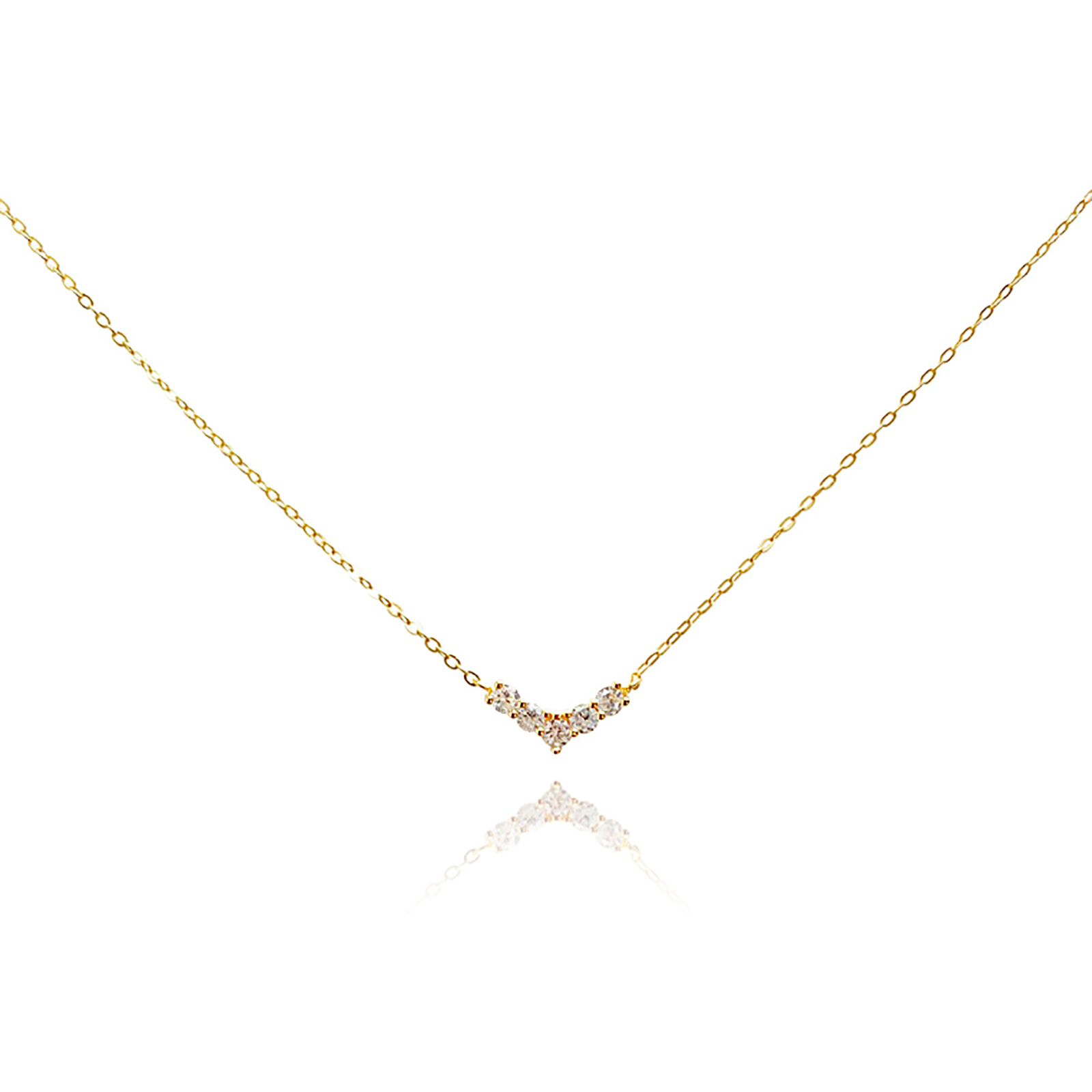 Delicate, chic and feminine. Introducing Csilla Diamante V-Pendant Necklace (Gold) - an everyday style fine necklace for a subtle daily sparkle. This design features a dainty v-shaped diamante pendant connected to a fine gold chain. The necklace is made in solid sterling silver with 18K gold plating for a lasting and noble gold shine. Perfect for girls and women of all ages and for all personal styles. Perfect for earring layering. Hypoallergenic, nickel, lead, and cadmium free.