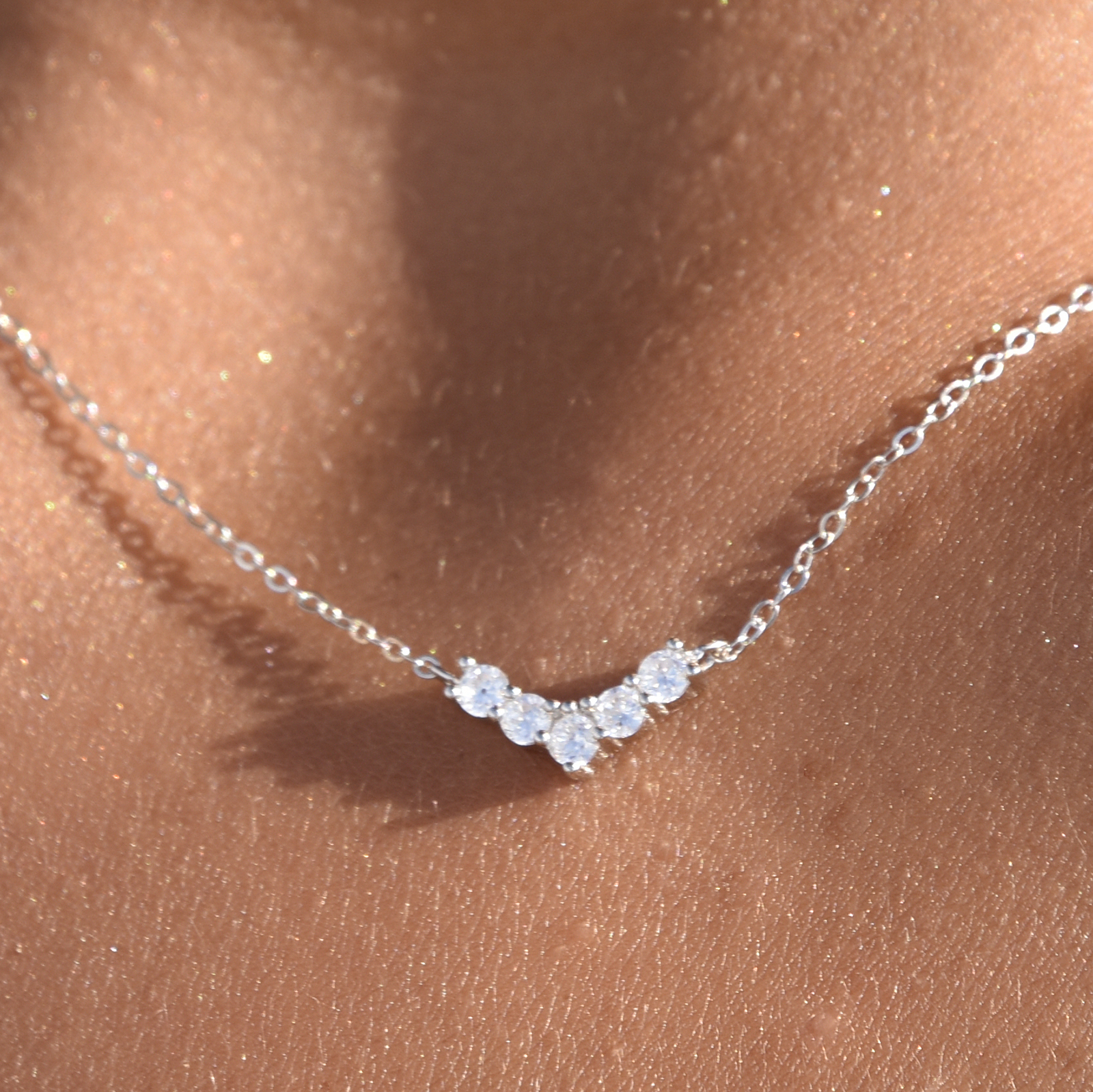 Delicate, chic and feminine. Introducing Csilla Diamante V-Pendant Necklace (Silver) - an everyday style fine necklace for a subtle daily sparkle. This design features a dainty v-shaped diamante pendant connected to a fine gold chain. The necklace is made in solid sterling silver for hypoallergenic wear. Perfect for girls and women of all ages and for all personal styles. Perfect for earring layering. Hypoallergenic, nickel, lead, and cadmium free.