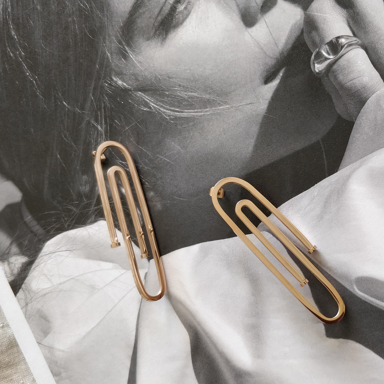 Paper clip it! Simple, bold and stylish, Daeja Modern Paper Clip Statement Earrings are another high fashion collection that is outpoken and unique. This deisgn is crafted in titanium steel (nickel free) with 18K gold plating. You can also effortlessly rock this design as 'one earring style'! Let this succinct contemporary design speak of your uncompromising fashion attitude.