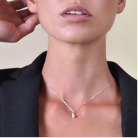 This necklace is 42cm long. Please kindly note that the position of the pendant necklace sitting on your chest can vary from individual to individual depending on your top size. Model is a size 10.