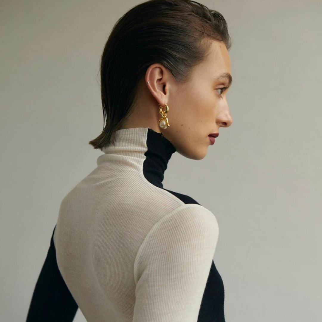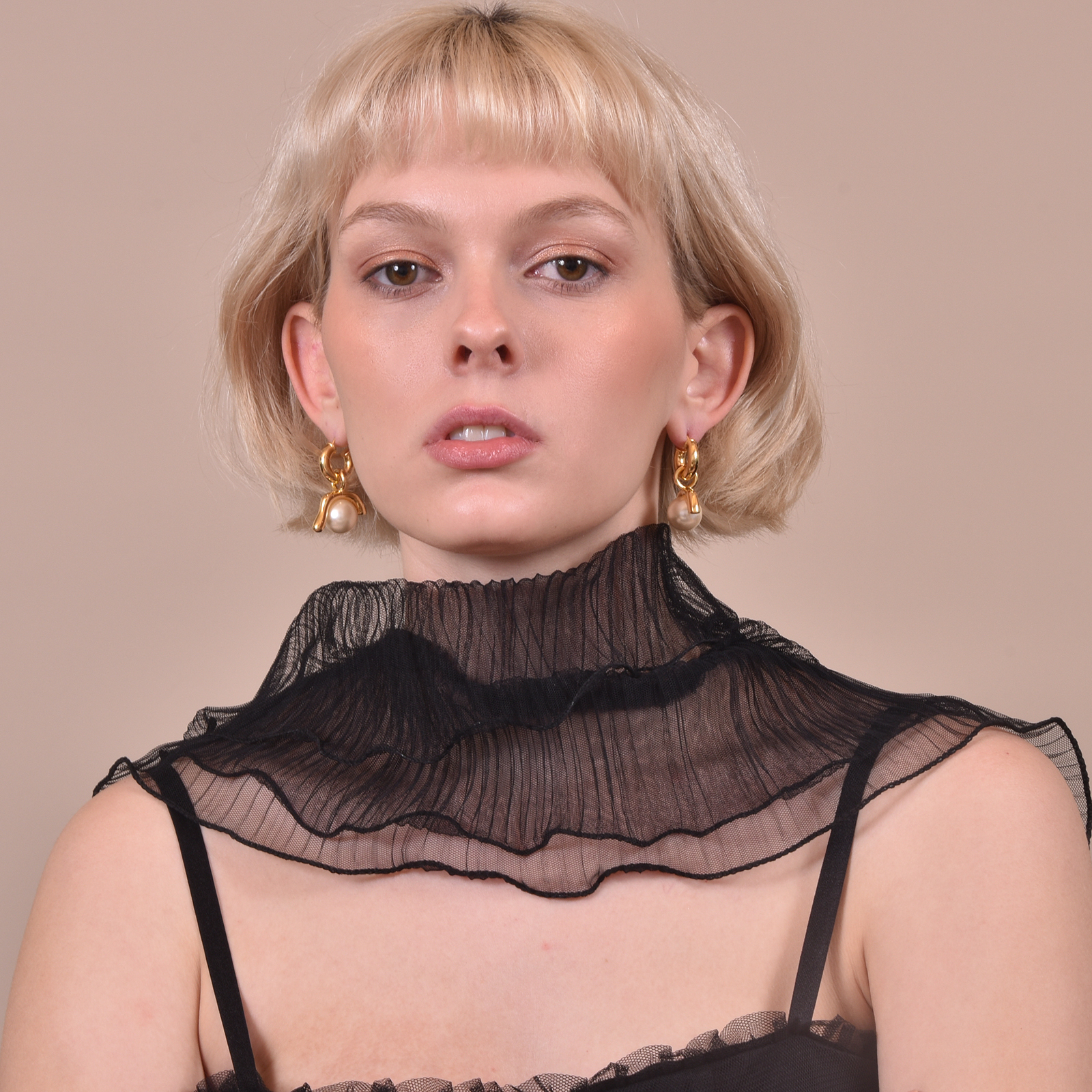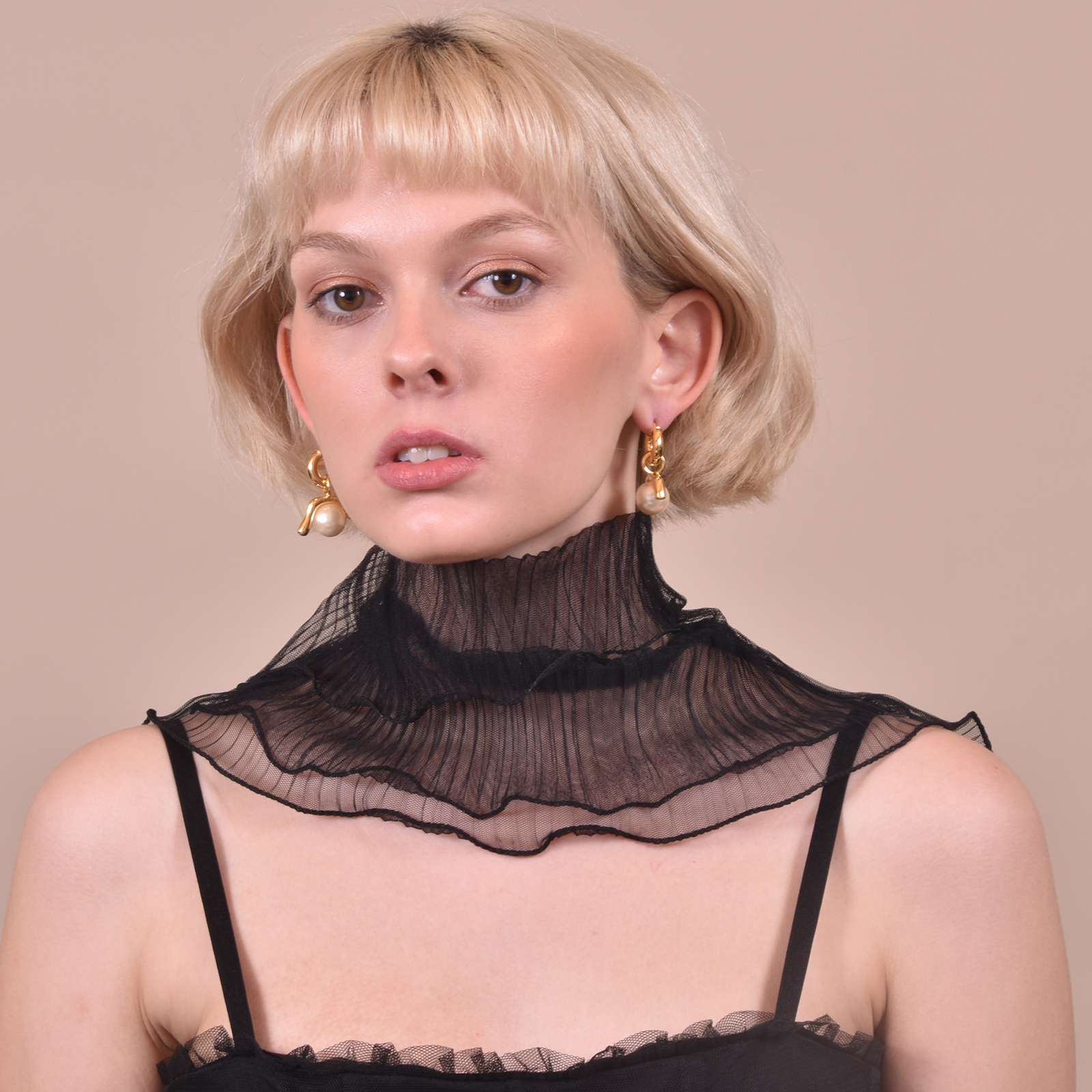 Artsy and contemporary design with premium quality, Dalene Contemporary Pearl Art Earrings are an iconic piece for lifelong. Embracing shapes, lines, curves and pearl, this design makes a truly high fashion statement. The quality of this design is also ensured with ethical brass and premium 18K gold plating. Suitable for all occasions and seasons.