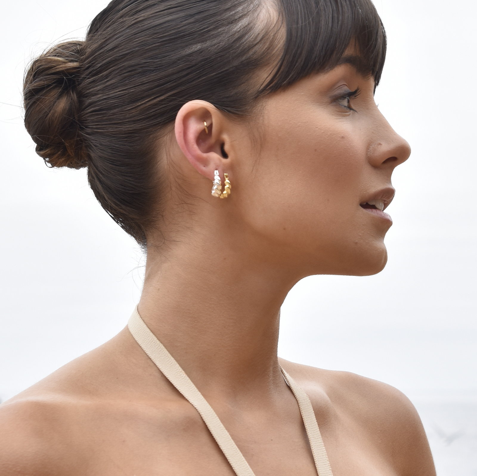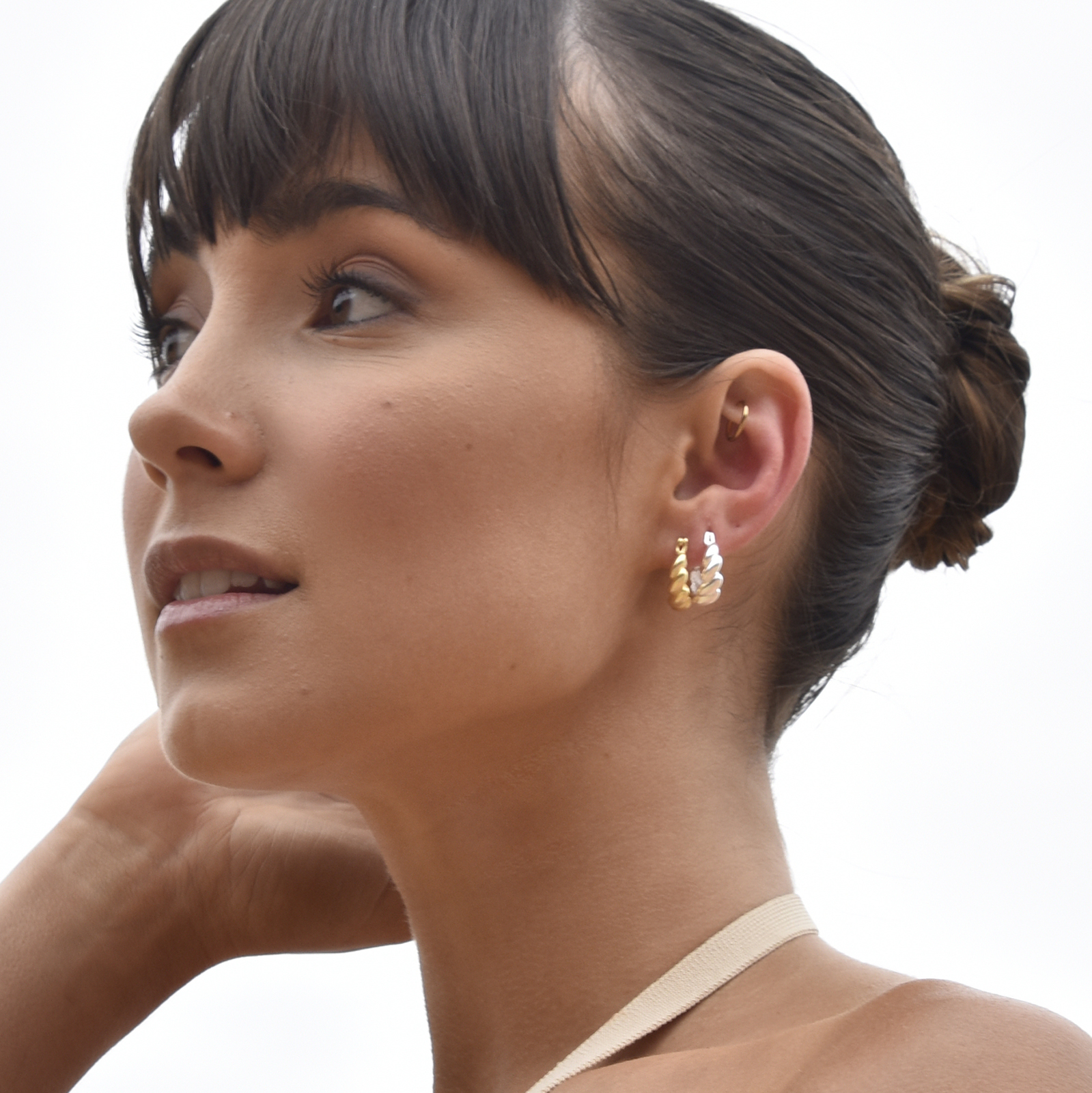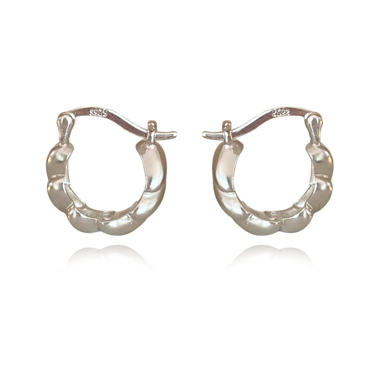 Chic flamboyant with a modern touch. Introducing Davina Croissant Hoop Earrings (Silver) - a French style twisted ear love ethically made to last. This design features chunky twisted huggie earrings with a smooth and shiny polish. The earrings are made in solid sterling silver with precious white rhodium plating for enduring wear and an extra anti-tarnish protection. They are of a comfortable weight to wear all day. Perfect for modern, retro, chic, trendy, earring layering, smart casual, casual, everyday styles and more. Hypoallergenic, nickel, cadmium and lead free.