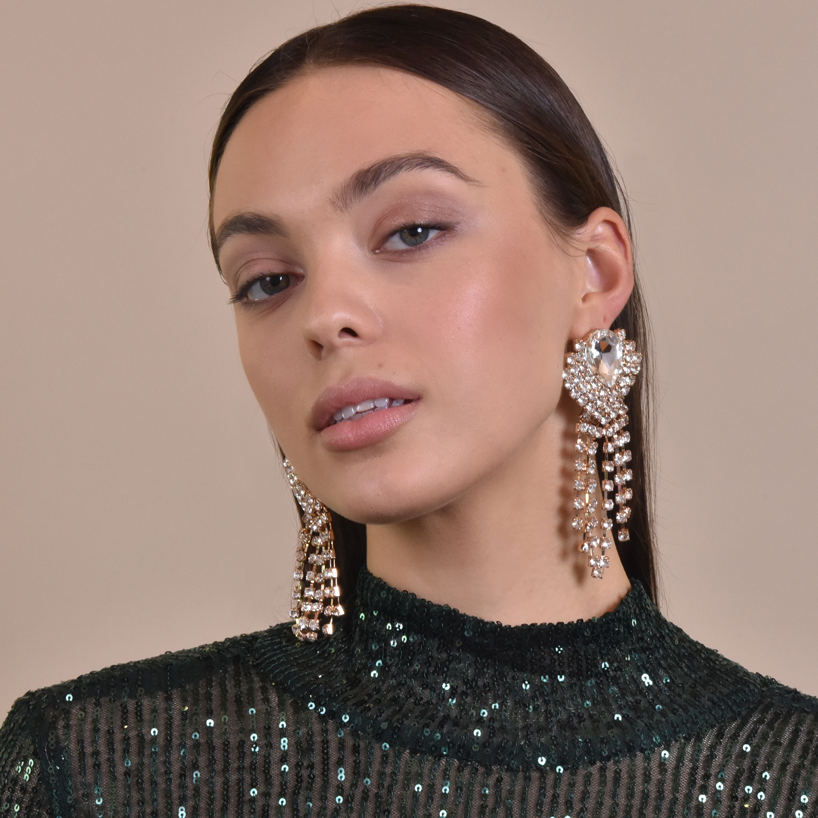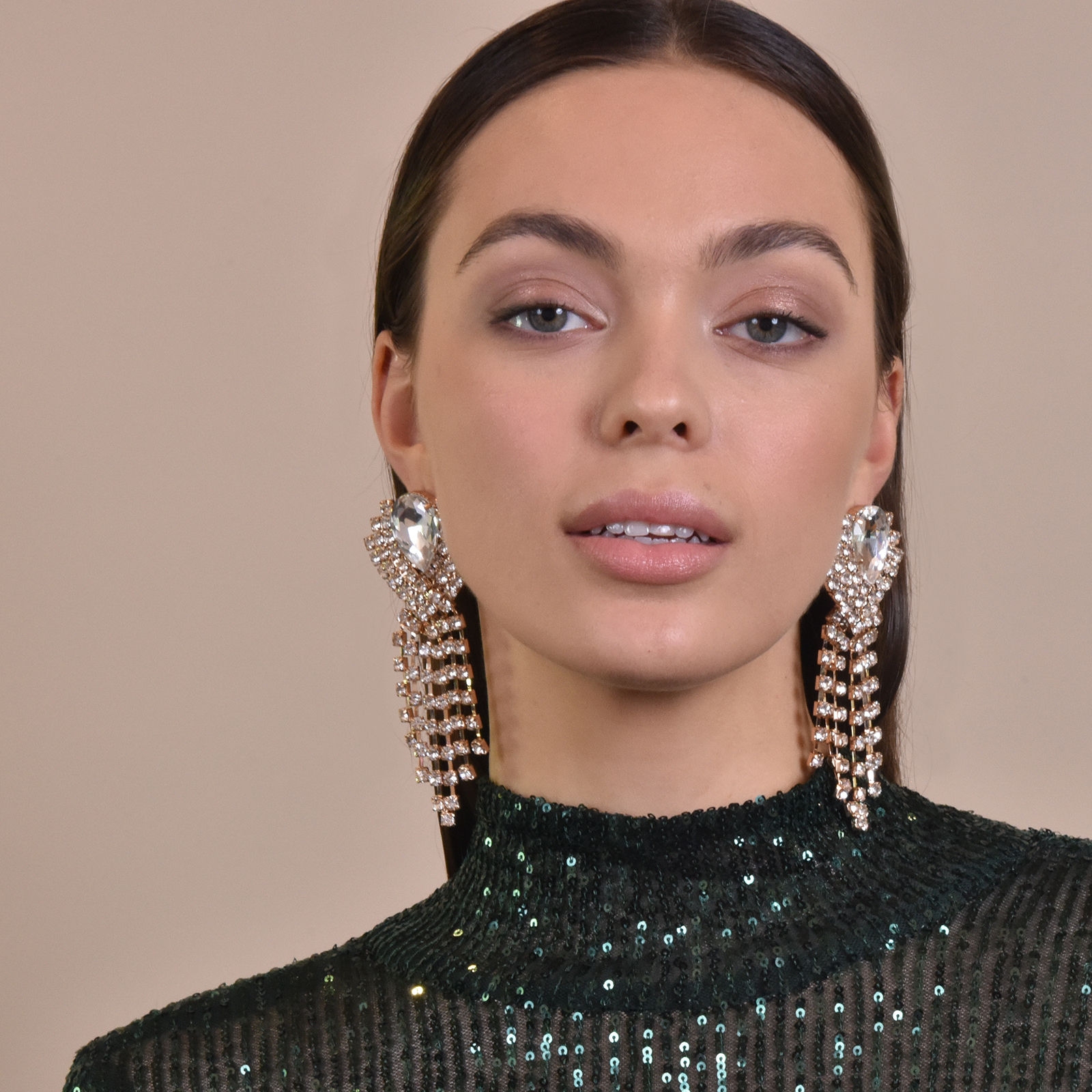 Extravagance is the new high fashion statement. Luxurious, expressive and exuding 'royal palace' vibes, Dawn Crystal Diamante Earrings make a straight-forward high fashion statement that doesn't require a second thought. As seen in luxurious styling magazines, this style is loved by high fashion enthusiasts as well as fashionistas who are dare to wear. Available for both pierced and non-pierced ears.