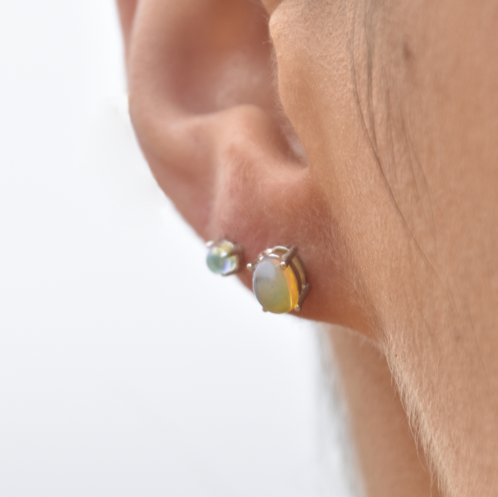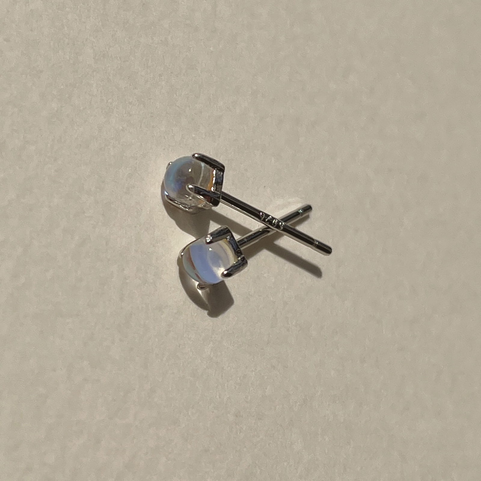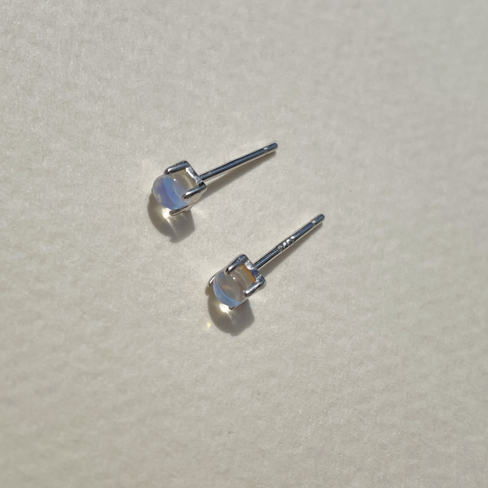 Simple, classy and versatile for styling. Introducing Dawn Dainty Moon Opal Stud Earrings - a succinct and delicate ear stud for women and girls of all ages. This design features dainty solid round moon opals with a clear aqua tone, embedded in a claw setting. Watch the mesmerising range of blue hues as sunlight refracts on different angles. The earrings are made of solid sterling silver for hypoallergenic wear. Suitable for women and girls of all ages. Perfect for dainty, chic, feminine, minimalist, earring layering, smart casual, causal, everyday styles and more. Hypoallergenic, nickel, cadmium and lead free.