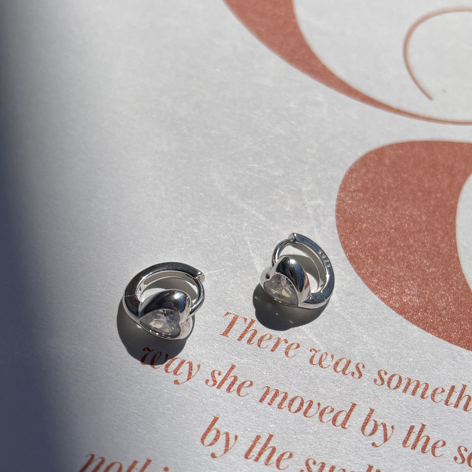 Everyday chicness with an adorable hearty sparkle. Introducing Delja Dainty Zircon Heart Huggie Earrings (Silver) - a dainty and defined ear love to infuse joy and self love to your everyday dressing. This design features dainty hoops with a love heart embedded Austrian zircon at the front of each. The earrings are made in solid sterling silver with white rhodium plating for hypoallergenic, an extra anti-tarnish protection and enduring wear. Perfect for almost all personal styles and add a delicate joy to your everyday dressing. Hypoallergenic, nickel, lead, and cadmium free.