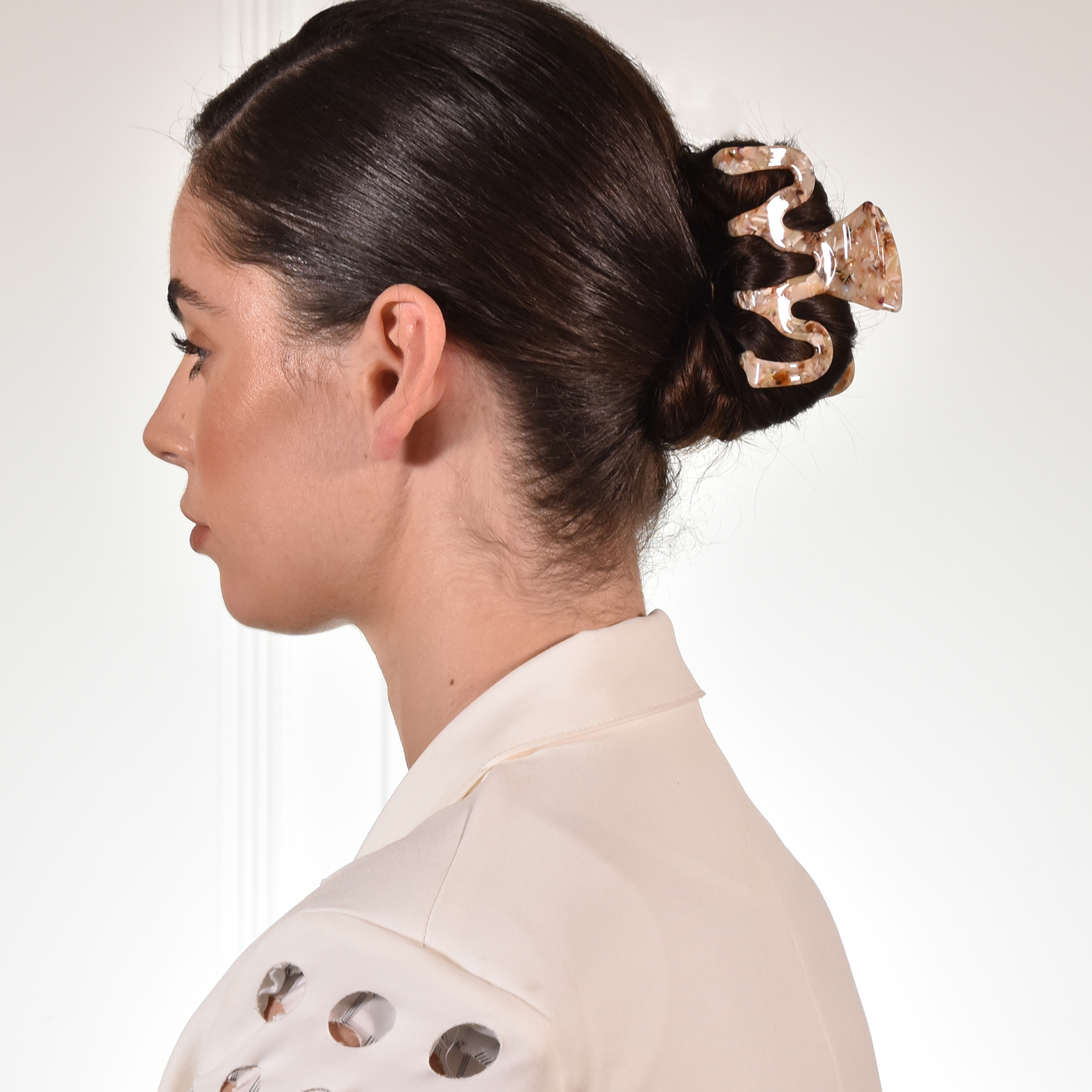 Modern, casual and artistic. Introducing Delma Modern Wave Hair Claw - a unique hair accessory for modern muses. The design features a wavy-lined claw with marble patterns - adding a creative vibe to your styling. A chic and modern hair claw perfect for modern, artsy, coastal, casual, chic, everyday styles and more.