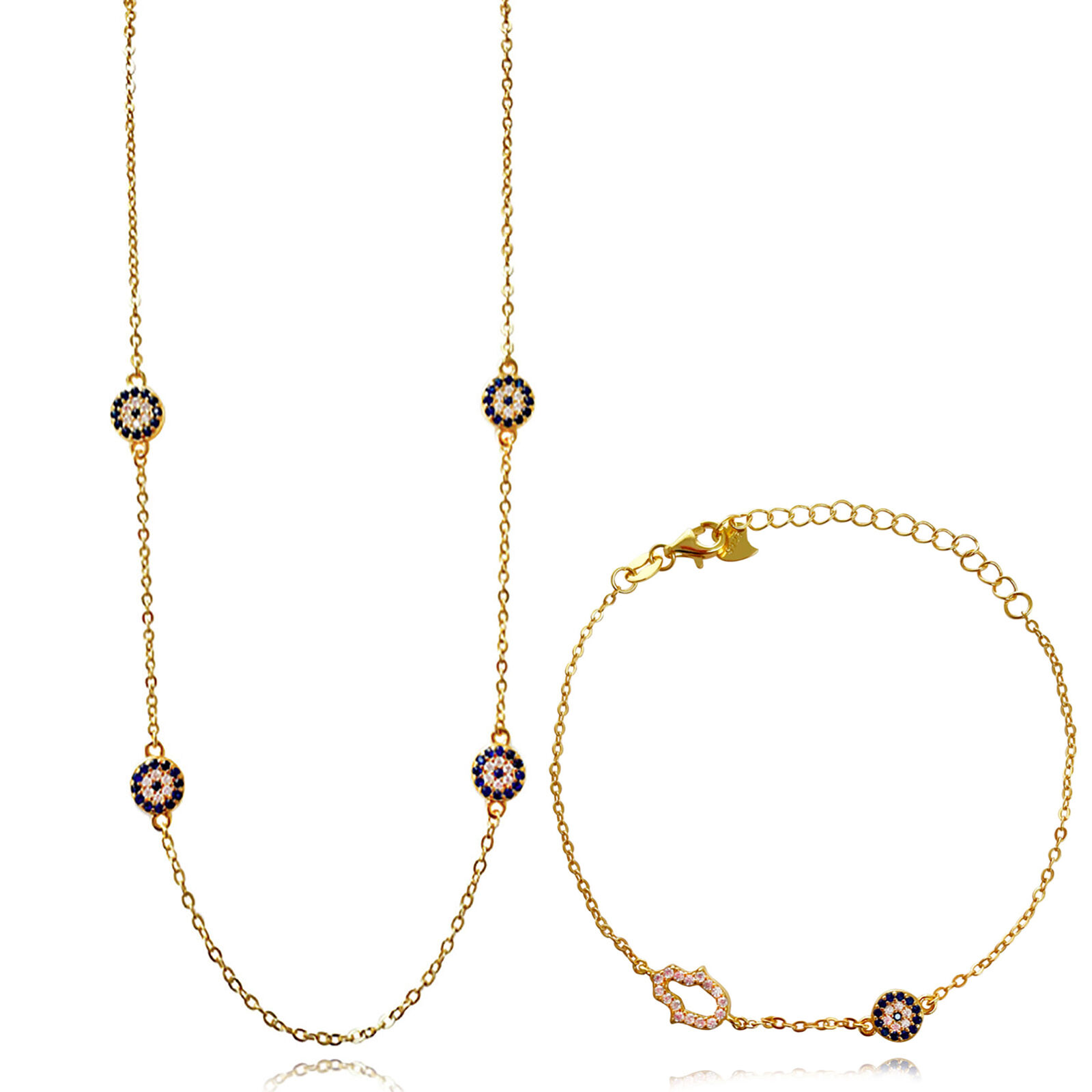 This Gift Set includes: Dilara Luck Evil Eye Layering Necklace (Gold) + Azra Luck Evil Eye Bracelet (Gold)