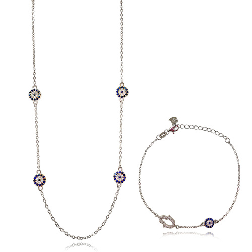 This Gift Set includes: Dilara Luck Evil Eye Layering Necklace (Silver) + Azra Luck Evil Eye Bracelet (Silver)