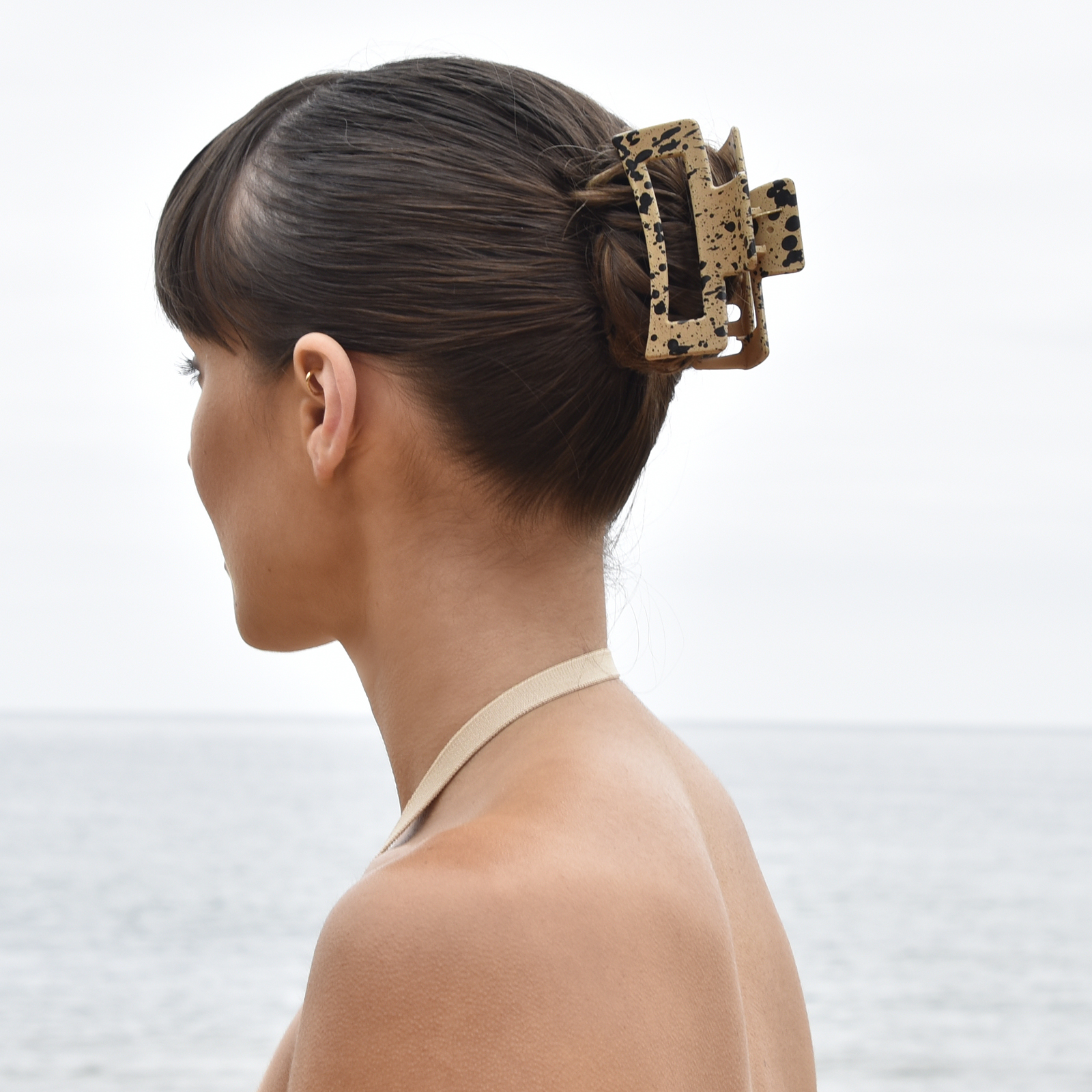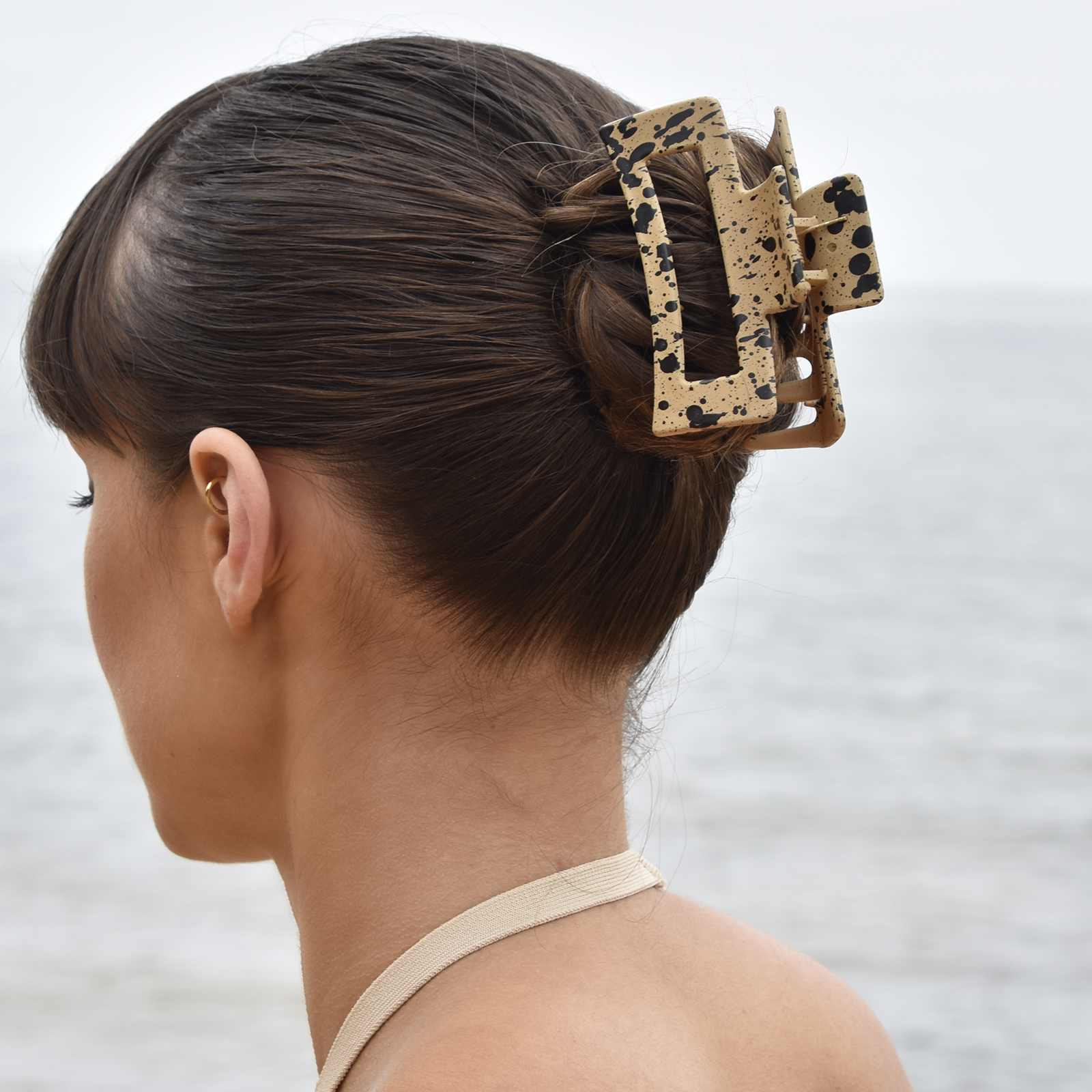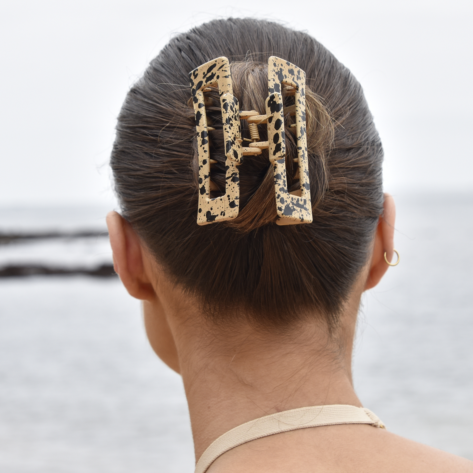 A trendy, unique and handy hair accessory that makes everyday styling simple and effortless. With a solid grab of hair, this medium sized artsy hair claw is easy to clip on and off. Suitable for girls and women of all ages.