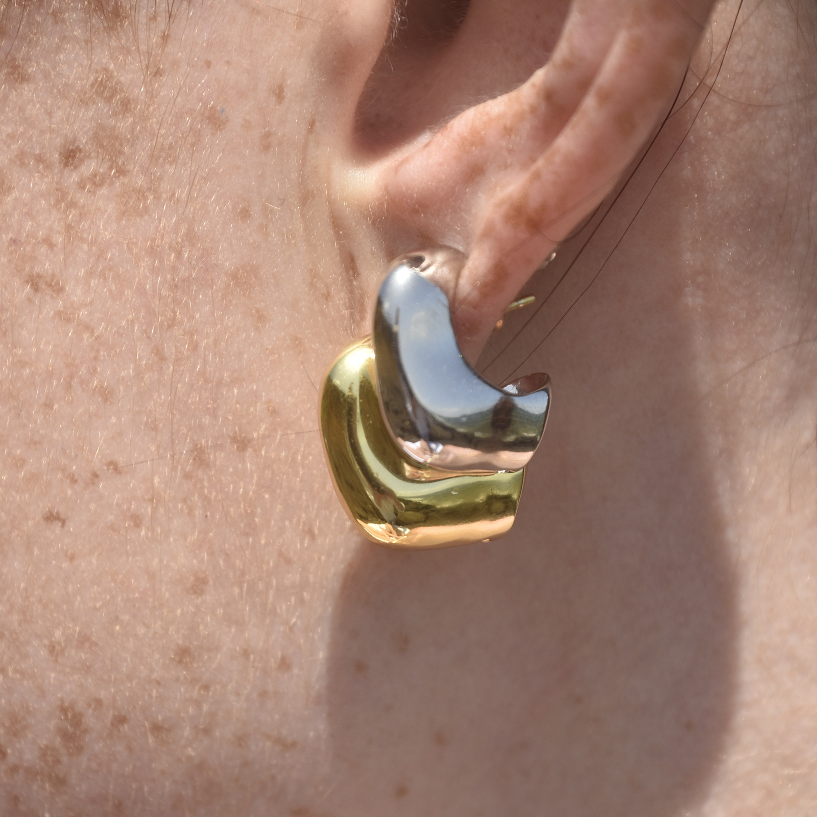 Artsy, contemporary and unique. Introducing Draco Sculptural Puff Earrings (Gold Vermeil) - an artisan crafted sculptural ear love for style hunters with a unique eye. This design features irregular shaped puffy bowl earrings with rounded edges and smooth polishing. The earrings are made in solid sterling silver with 2.5 microns of 18K gold plating (to Gold Vermeil Jewellery Standards) for hypoallergenic, enduring wear, and a noble 18K gold shine. Perfect for modern, artsy, creative, chic, punk, smart casual, casual, earring layering, everyday styles and more. Hypoallergenic, nickel, lead, and cadmium free.
