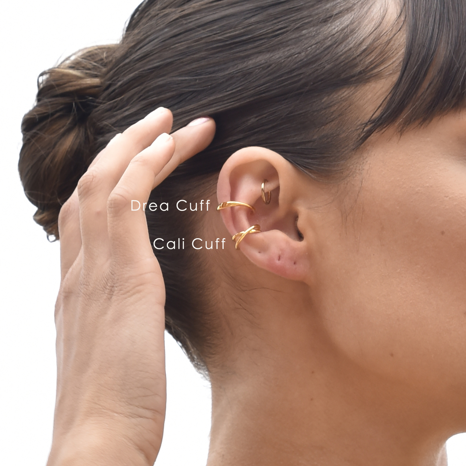 Artsy, modern, and chic. Introducing Drea Ear Contour Minimalist Cuff Earring (Single Piece) - a contemporary and simple ear cuff to add a subtle curve to your ear styling. This design features a wavy C-line cuff smoothly polished with a subtle flow. This ear piece is crafted in solid sterling silver with 2.5 microns of 18K gold plating (to Gold Vermeil Jewellery Standard) for hypoallergenic and enduring wear.